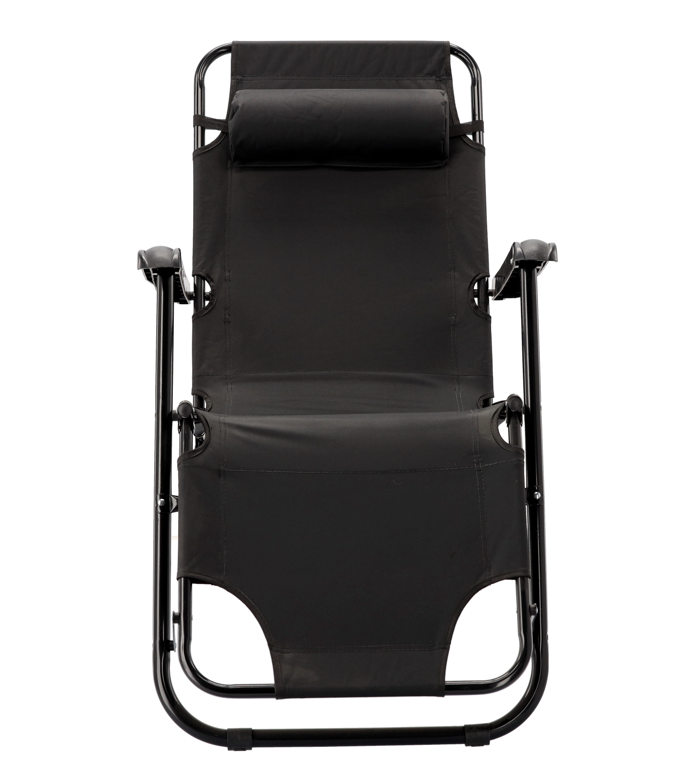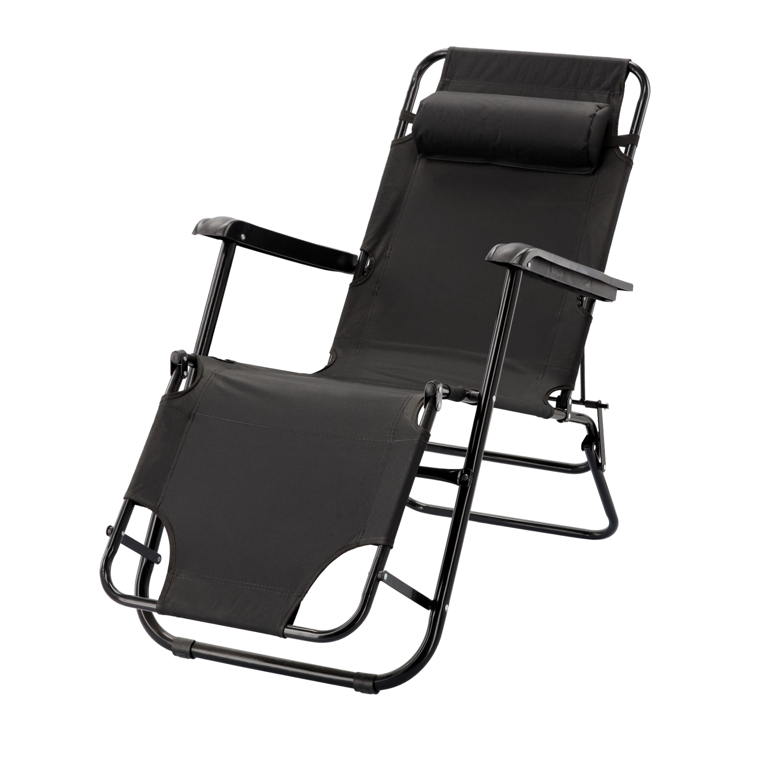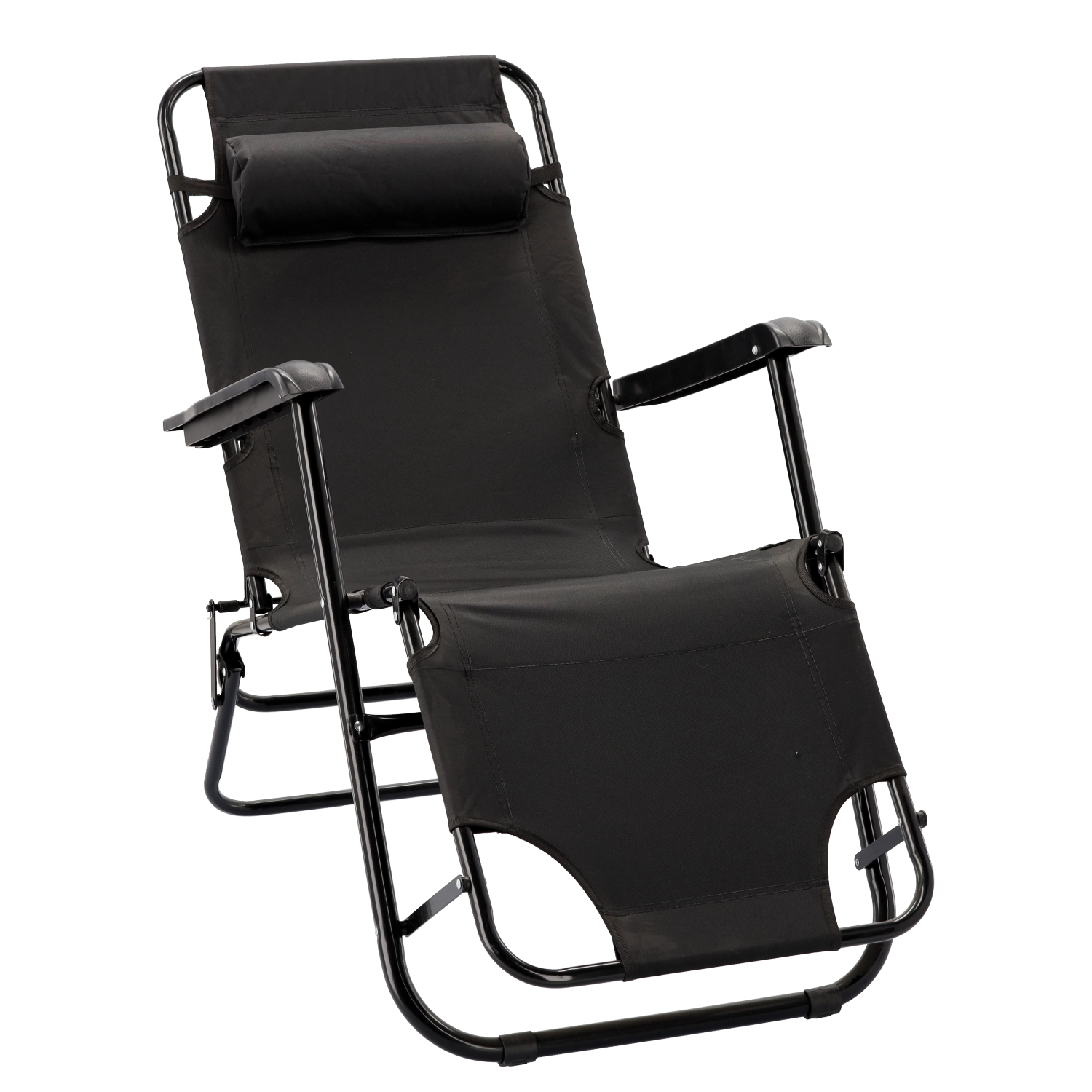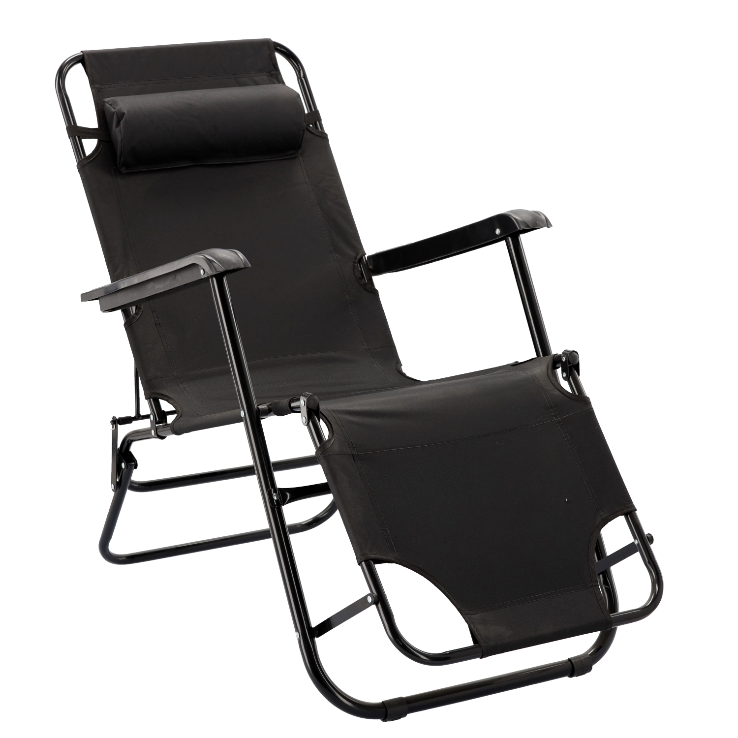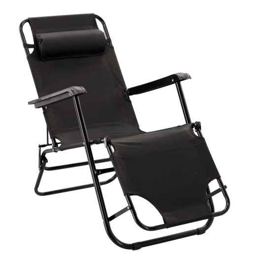 Praktické skládací zahradní lehátko v elegantní černé barvě je ideální pro terasu, zahradu i cestování. Díky kovové rámové konstrukci s práškovým lakem je stabilní a odolné, zatímco prodyšná textilie zajistí příjemný komfort i v horkých dnech. Polštářek pod hlavu lze jednoduše nastavit nebo sejmout.