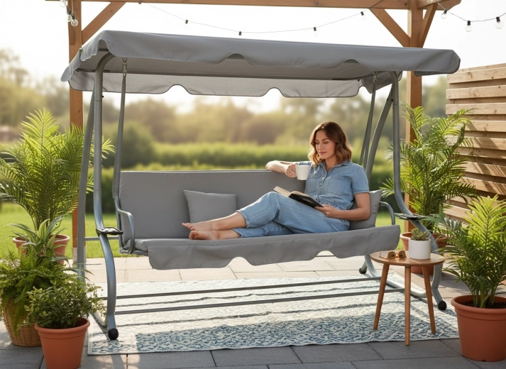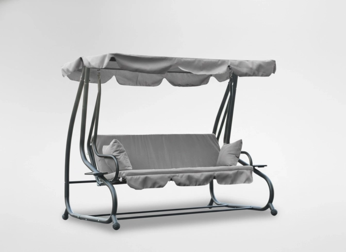 Tato zahradní houpačka kombinuje moderní design, stabilitu a vysoký uživatelský komfort. Široké sedadlo pro tři osoby lze snadno rozložit do pohodlné lehací plochy, takže během chvilky vytvoříte ideální místo pro odpočinek. Polstrované sedáky a opěrky s měkkou pěnou zajišťují příjemné posezení i při delším používání.