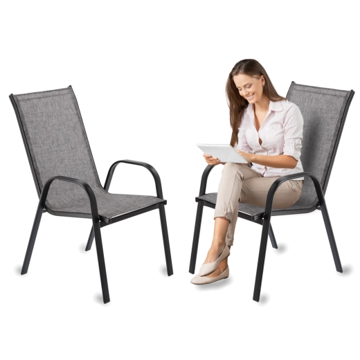 Užijte si pohodlí a styl na čerstvém vzduchu. Dvě křesla GARDENLINE se šedým textilenem a černou ocelovou konstrukcí přinášejí univerzální vzhled, který zapadne do každé venkovní sestavy. Prodyšná a rychleschnoucí textilie je příjemná na dotek a odolná vůči UV záření, zatímco práškově lakovaná ocel zajišťuje pevnost a dlouhou životnost.