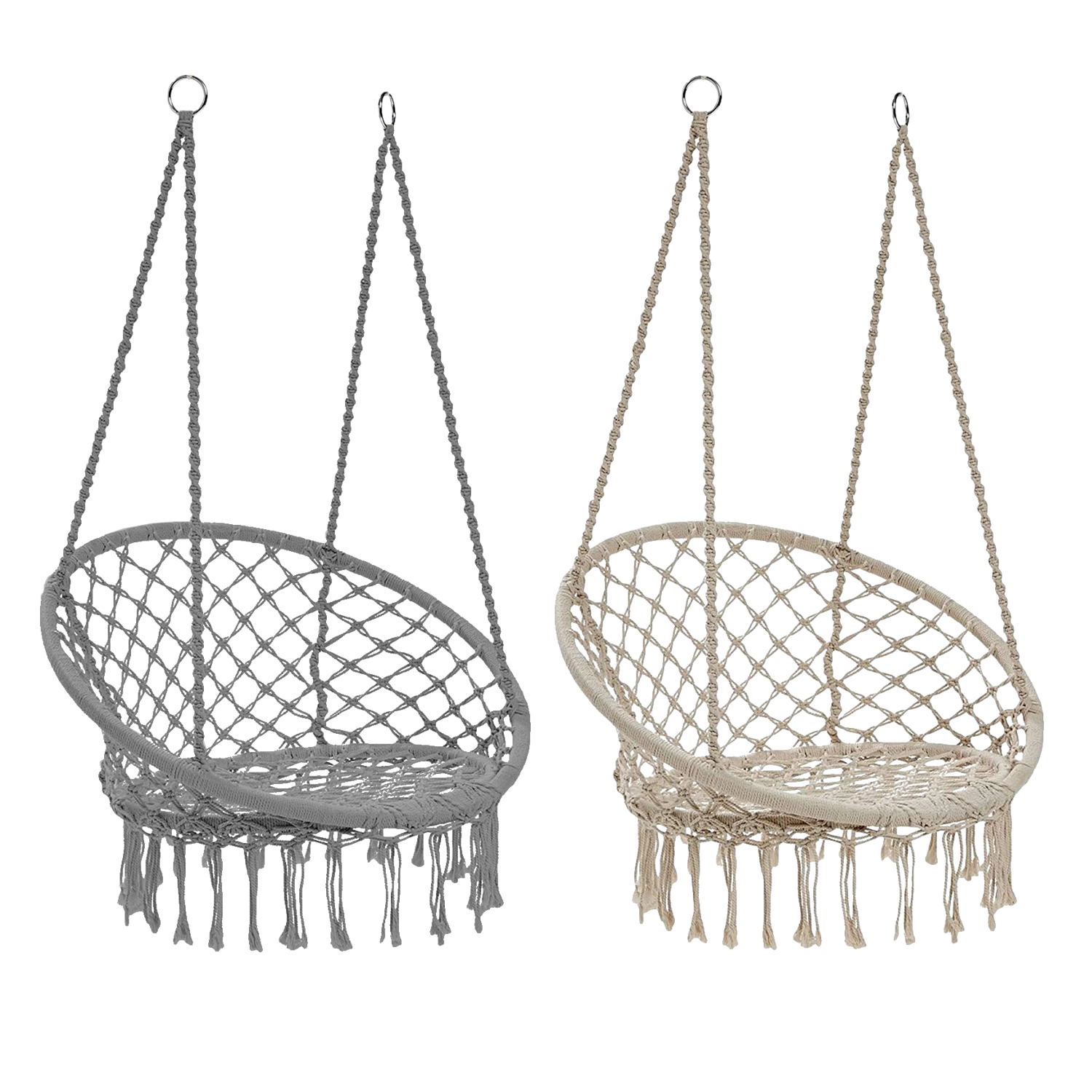 Závěsné křeslo hnízdo je ideální pro balkon, terasu i interiér. Snadno ho zavěsíte ke stropu nebo na trám a okamžitě získáte útulné místo pro čtení, odpočinek či lenošení. Elegantní béžovo‑šedý design s třásněmi skvěle zapadne do moderního i boho stylu.