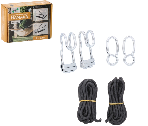 Tato univerzální montážní sada umožní pohodlné a spolehlivé zavěšení houpací sítě na terase, na zahradě i v interiéru. Díky nerezové oceli a kvalitním lanům je odolná vůči povětrnostním vlivům a zaručuje bezpečné uchycení s nosností až 200 kg.