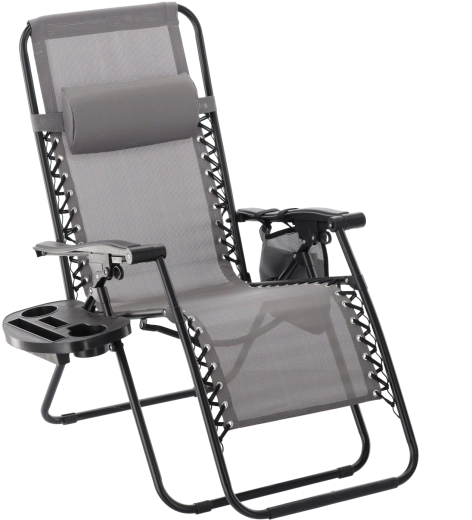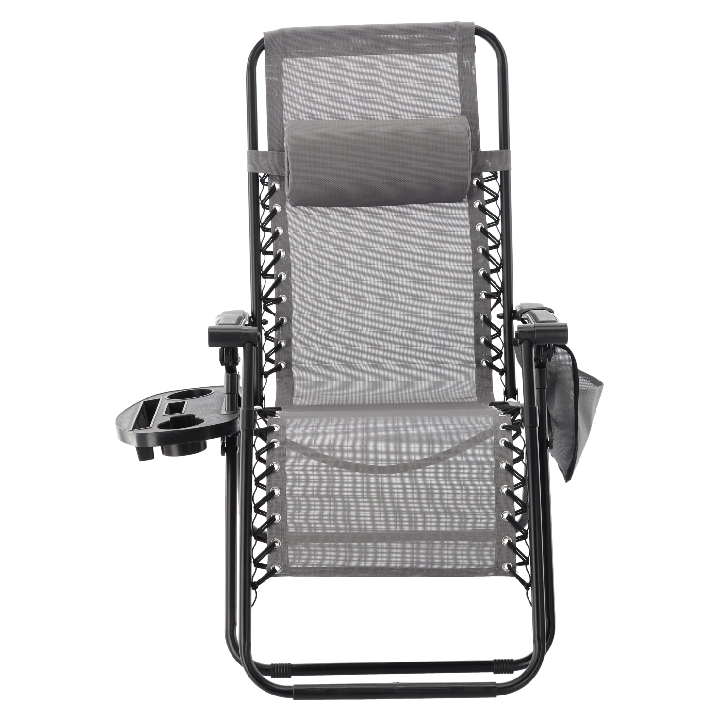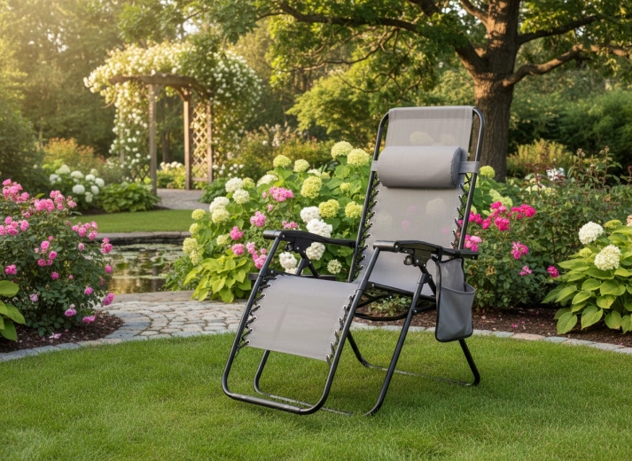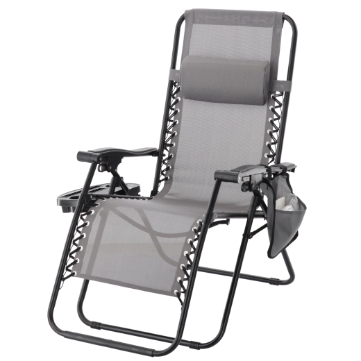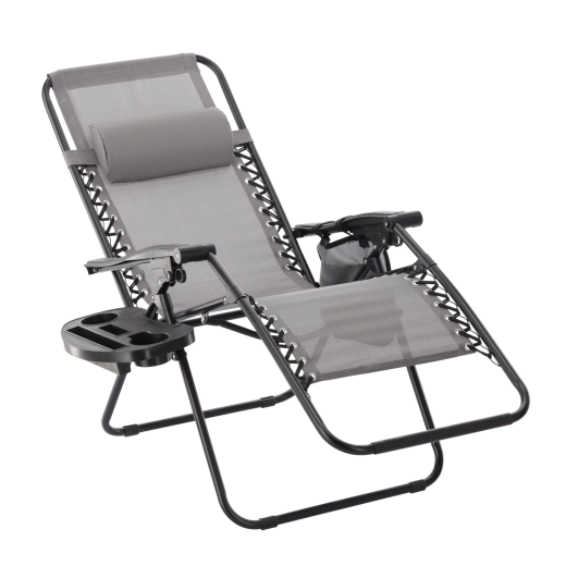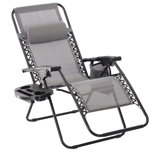 Užijte si relax na terase či zahradě s tímto šedým lehátkem s funkcí téměř nulové gravitace. Nabízí nastavitelnou polohu ležení, odnímatelný podhlavník, praktický boční stolek s držákem nápojů a kapsu na nezbytnosti. Prodyšná síťovina Textilene zajišťuje komfort i v horku a pevný kovový rám dodá stabilitu a odolnost pro každodenní venkovní použití.