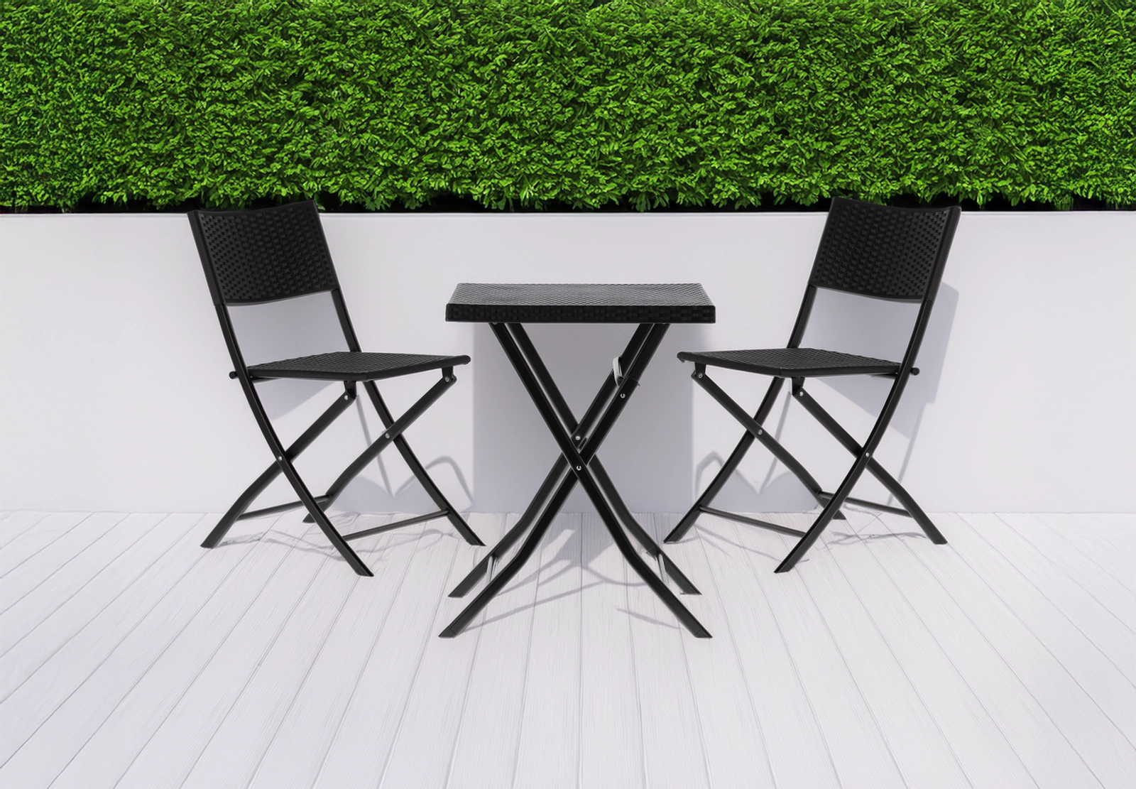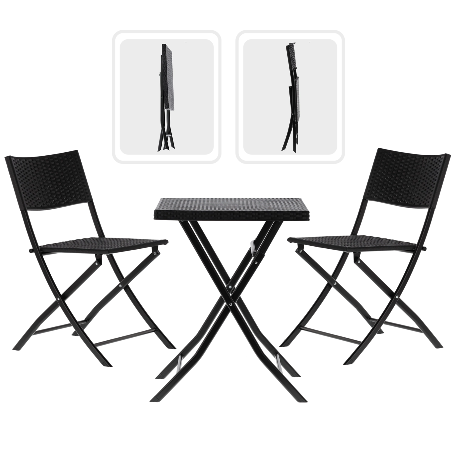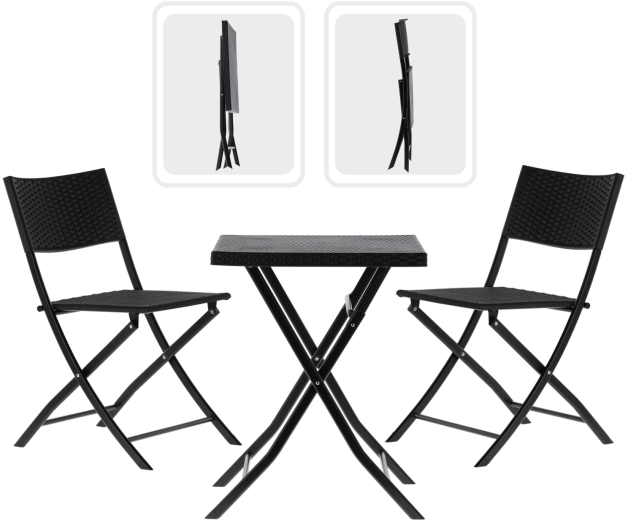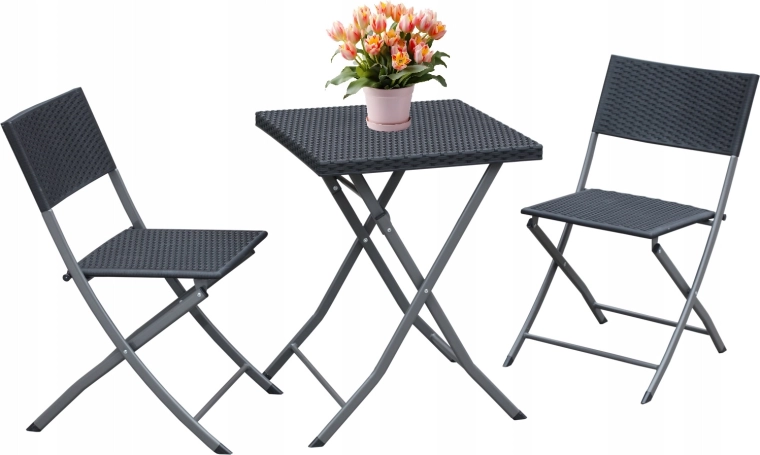 Užijte si ranní kávu nebo večerní relax na malém prostoru. Tento kompaktní bistro set nabízí lehkost, odolnost a snadné skladování. Ratanový vzhled v moderním antracitu se hodí k jakémukoli stylu balkonu, lodžie či menší terasy.