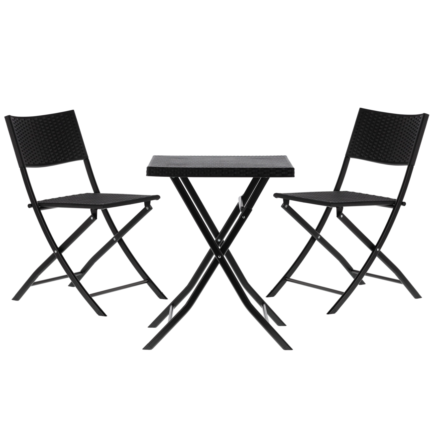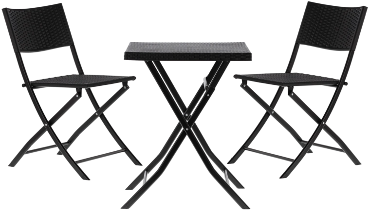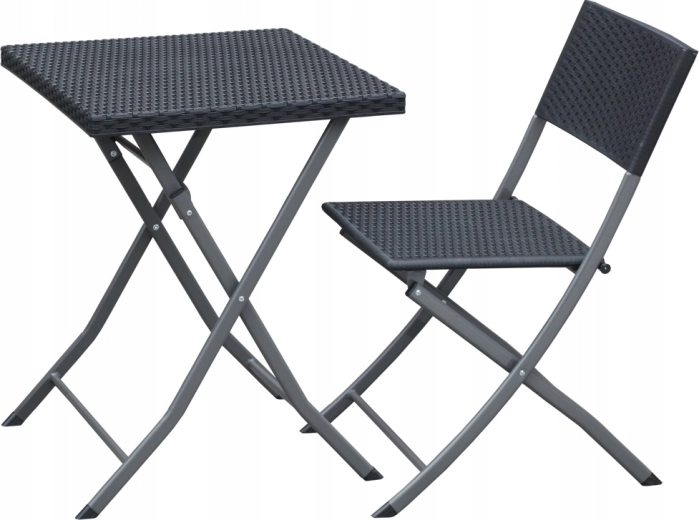 Stůl o rozměrech 58 × 58 × 74 cm a židle 59 × 44 × 78 cm jsou navrženy tak, aby se rychle složily a snadno přenesly. Polyratan odolává vlhkosti i nečistotám, kovový rám přidává pevnost a protiskluzové koncovky zvyšují stabilitu na různých površích.