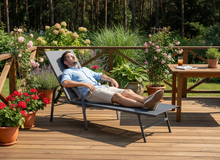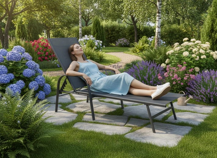 Nastavitelný mechanismus opěradla umožní rychle změnit polohu od sezení po pohodlné ležení – ideální pro čtení, relax i opalování.