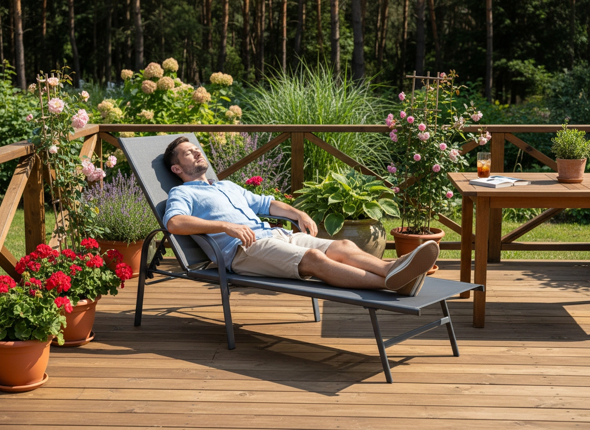 Díky polohovatelnému opěradlu si snadno nastavíte ideální úhel pro čtení, odpočinek i opalování. Stabilní rám s promyšlenými detaily je připraven na každodenní provoz na zahradě, u bazénu i na balkoně.