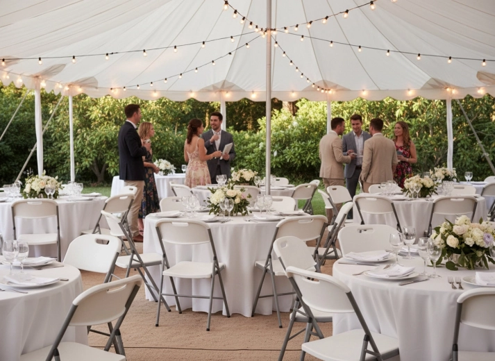 Židle je skvělou volbou pro catering, svatební a firemní akce, kempování, zahradní posezení i domácí použití. Po složení je plochá, lehká a zabere minimum místa, takže ji snadno uskladníte nebo odvezete na další akci.