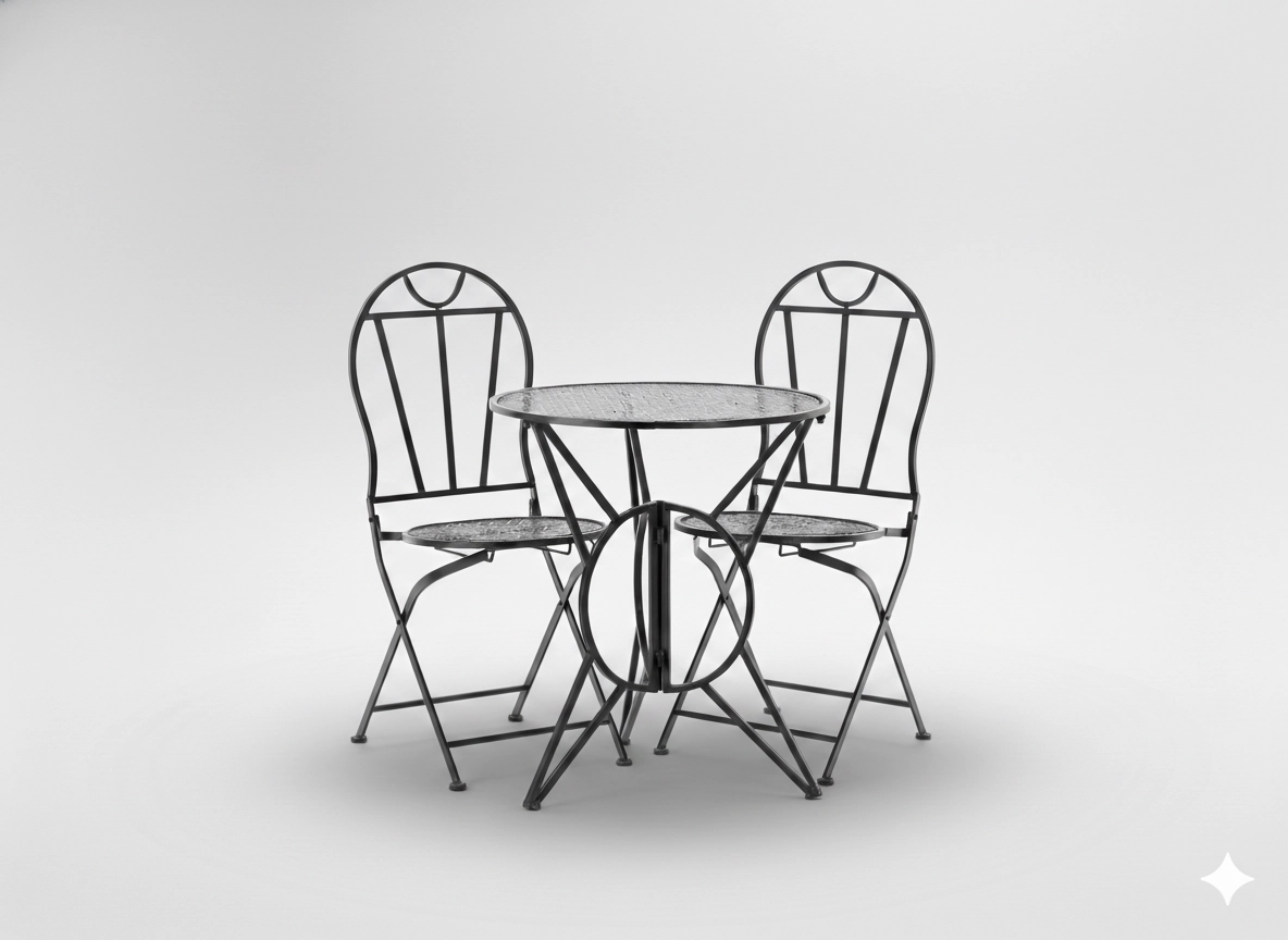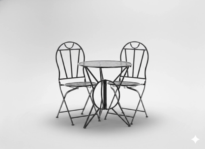 Kompaktní 3dílná sada SUSAN vyniká dekorativními průřezy a nadčasovým vintage vzhledem. Kovové X výztuhy zajišťují stabilitu, zatímco skládací mechanismus židlí i stolu umožní rychlé uklizení a úsporu místa. Ideální pro malé balkony, městské terasy i zahradní koutky.