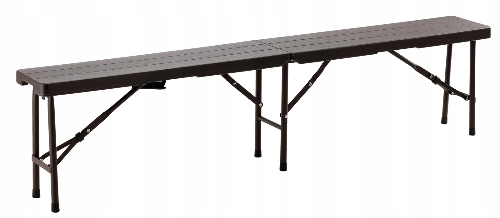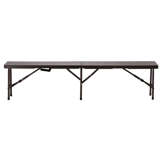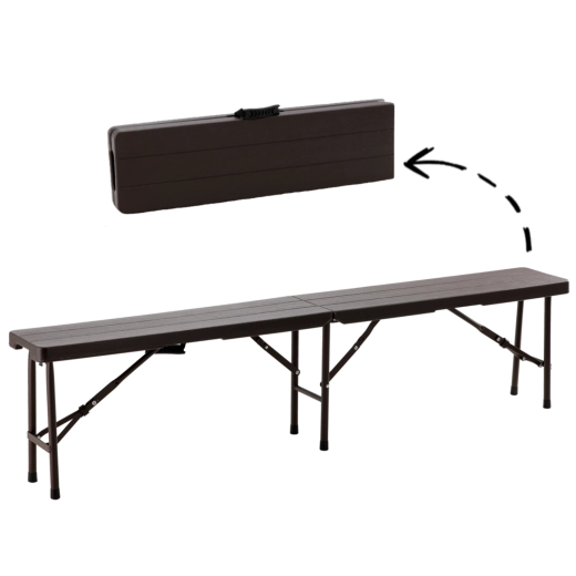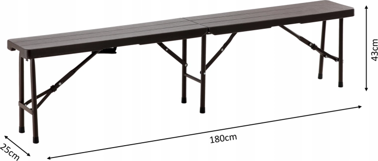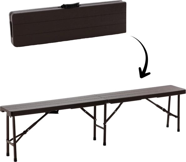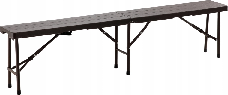 Praktická a odolná skládací lavice s délkou 180 cm nabízí pohodlné sezení pro více osob. Díky stabilní ocelové konstrukci, protiskluzovým koncovkám a snadno omyvatelnému HDPE povrchu v dekoru dřeva je ideální na zahradu, piknik, kempování i akce pod širým nebem. Skládací design s madlem zaručuje jednoduchý transport a úsporu místa.