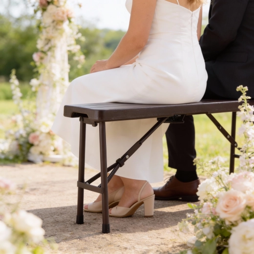 Hledáte univerzální sezení pro venek i dovnitř? Tato hnědá skládací lavice 180 × 25 × 43 cm kombinuje pohodlí, mobilitu a odolnost. Sedák z HDPE v dekoru dřeva je pevný, snadno se čistí a vypadá elegantně v jakémkoli prostředí – od zahradní párty po svatební hostinu.