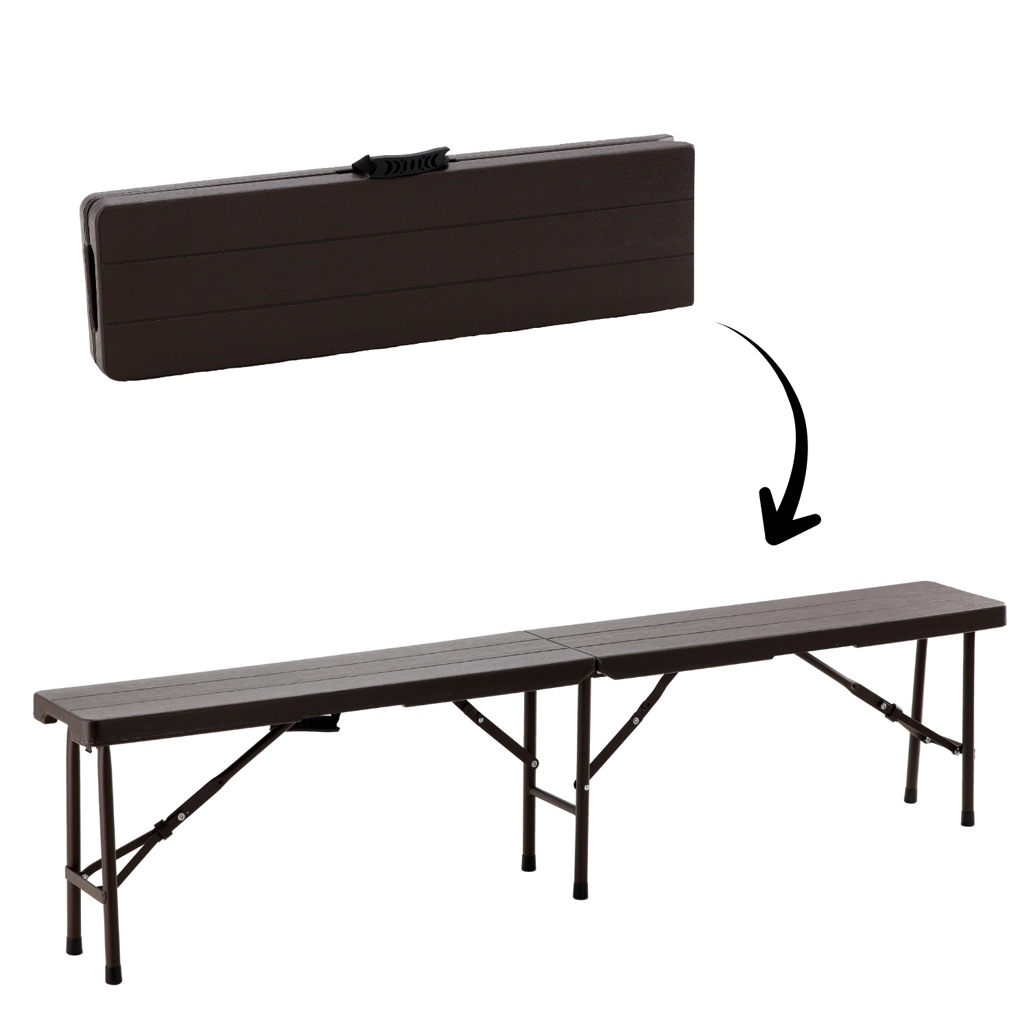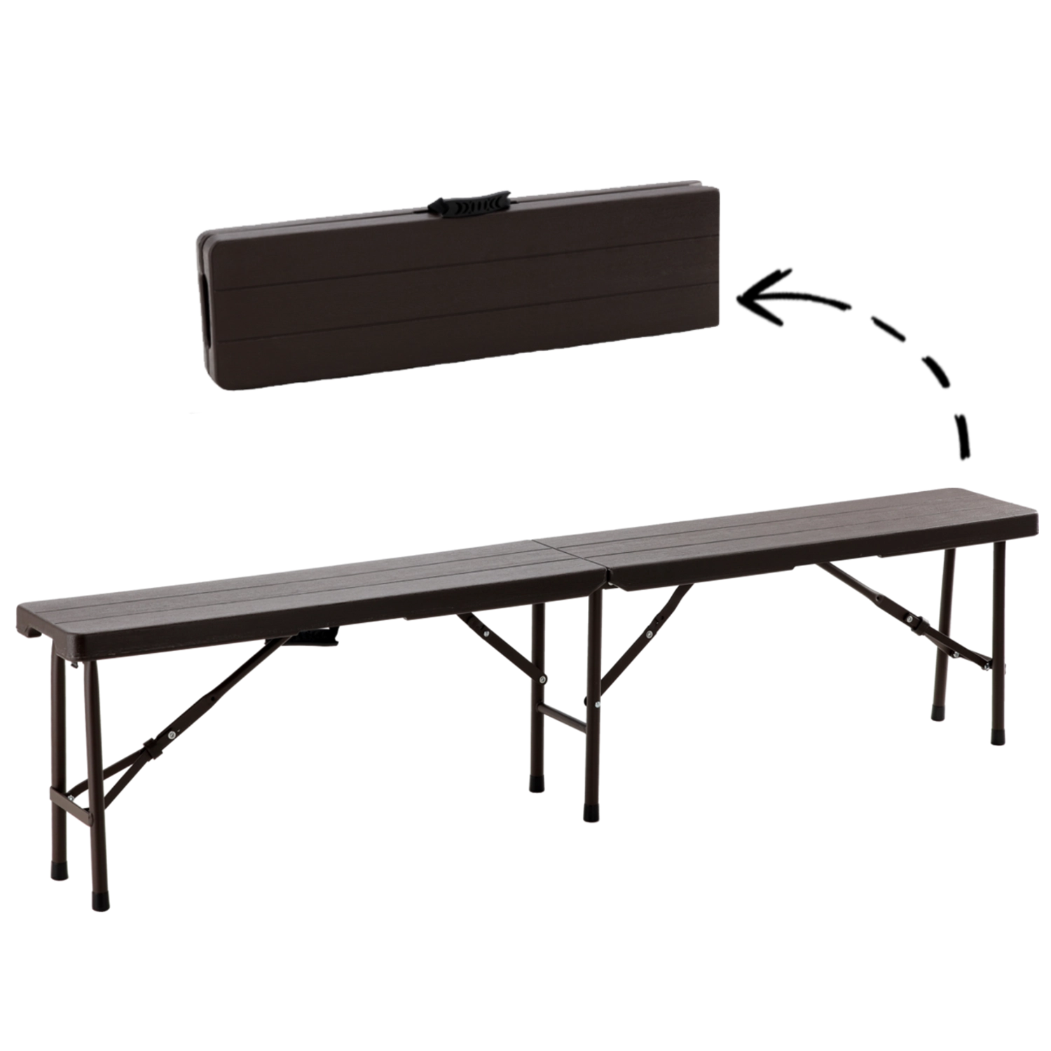Lavice se přehne napůl do kompaktního tvaru s integrovaným madlem. Ideální pro rychlé sbalení, převoz i úsporu prostoru při skladování.