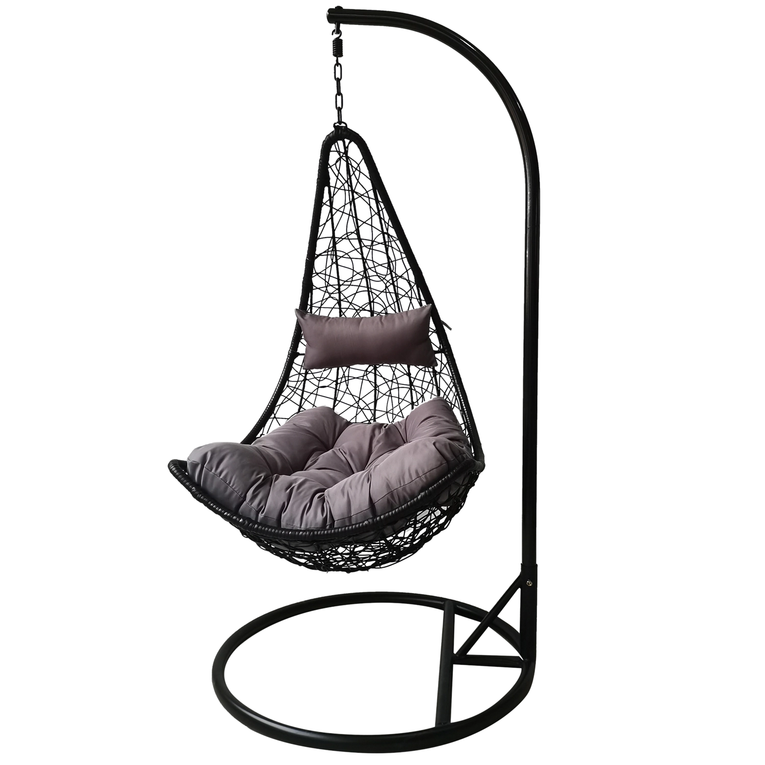 Užijte si klidné houpání a pohodlí na balkoně, terase, v obýváku nebo na zahradě. Závěsné křeslo s pevnou ocelovou rámovou konstrukcí a výpletem z technoratanu vyniká moderním vzhledem, snadnou údržbou a odolností proti povětrnostním vlivům. Měkký šedý polstr zajistí příjemné posezení i při delším odpočinku.