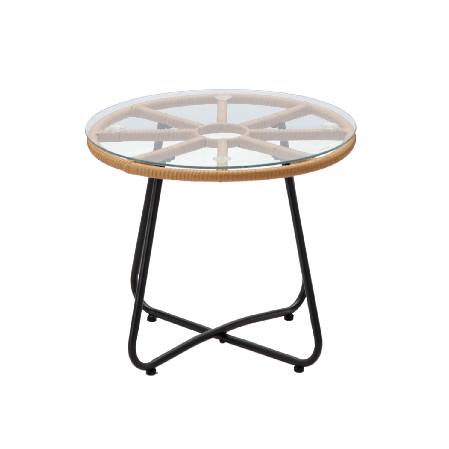 Umělý ratan odolný vůči počasí, galvanicky upravený ocelový rám a 5mm tvrzené sklo stolku zajišťují stabilitu, trvanlivost a snadnou údržbu.