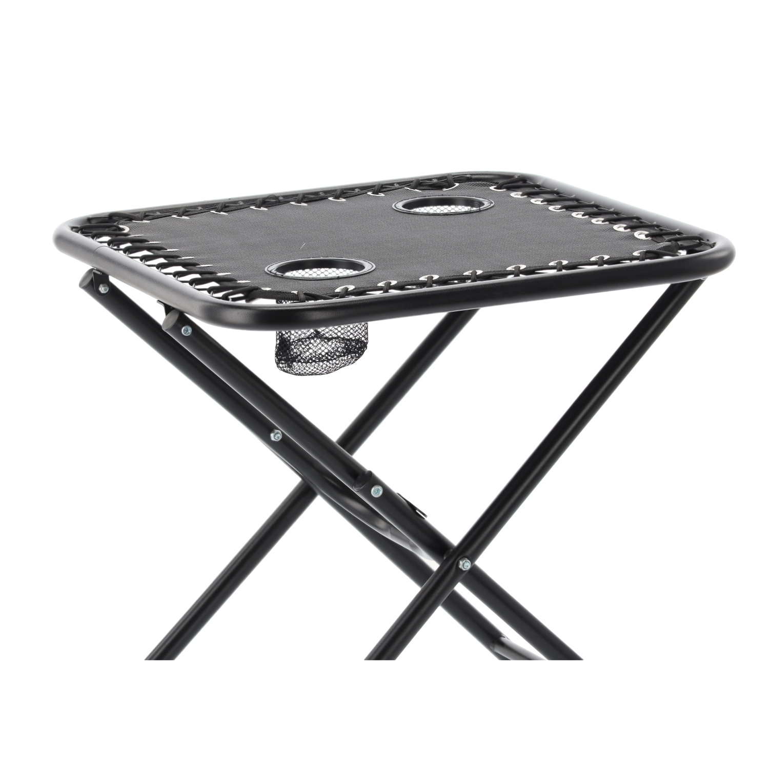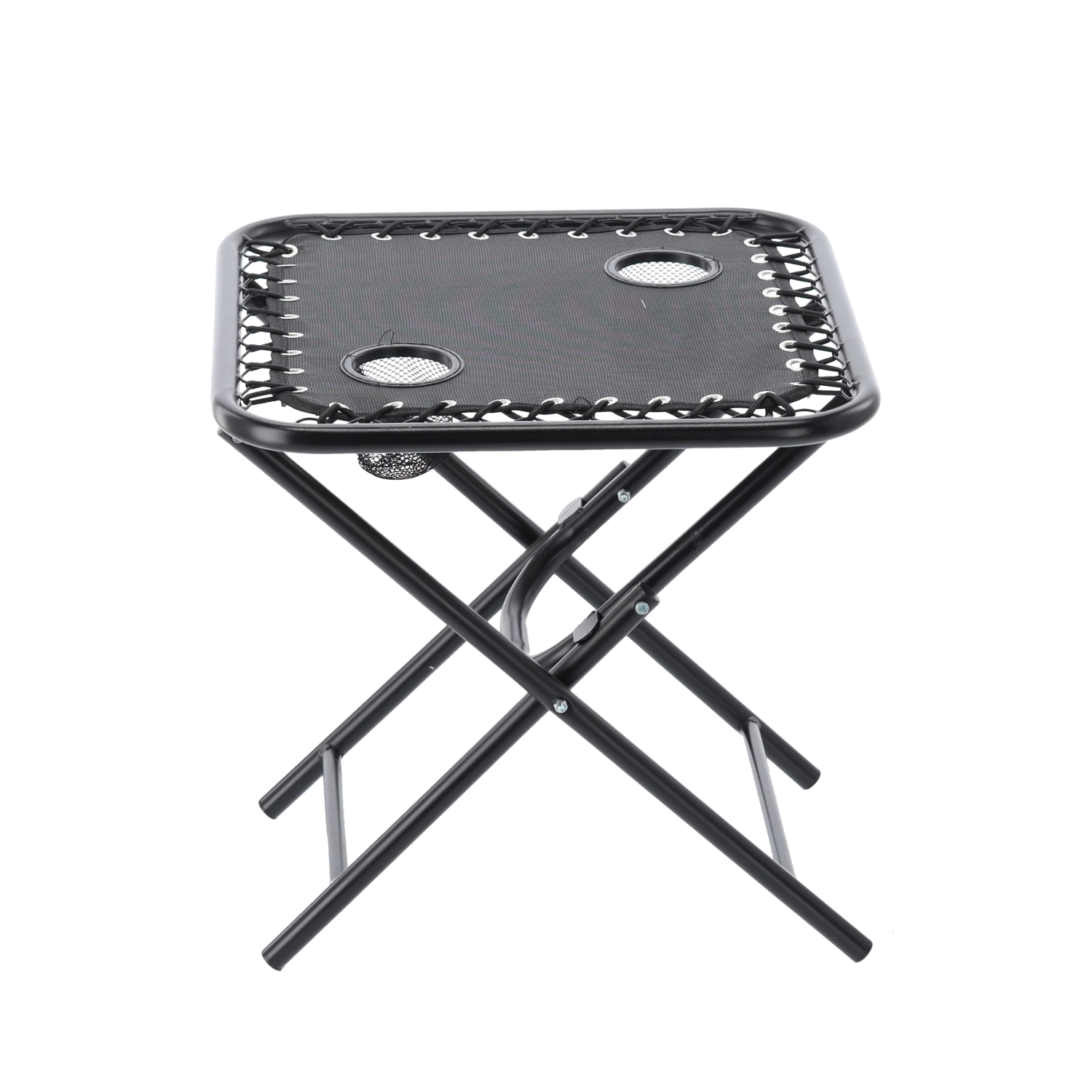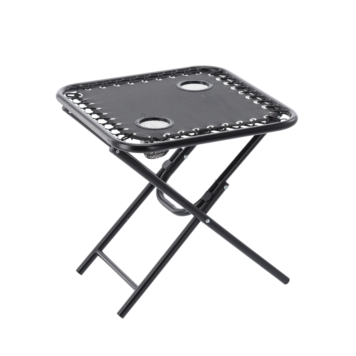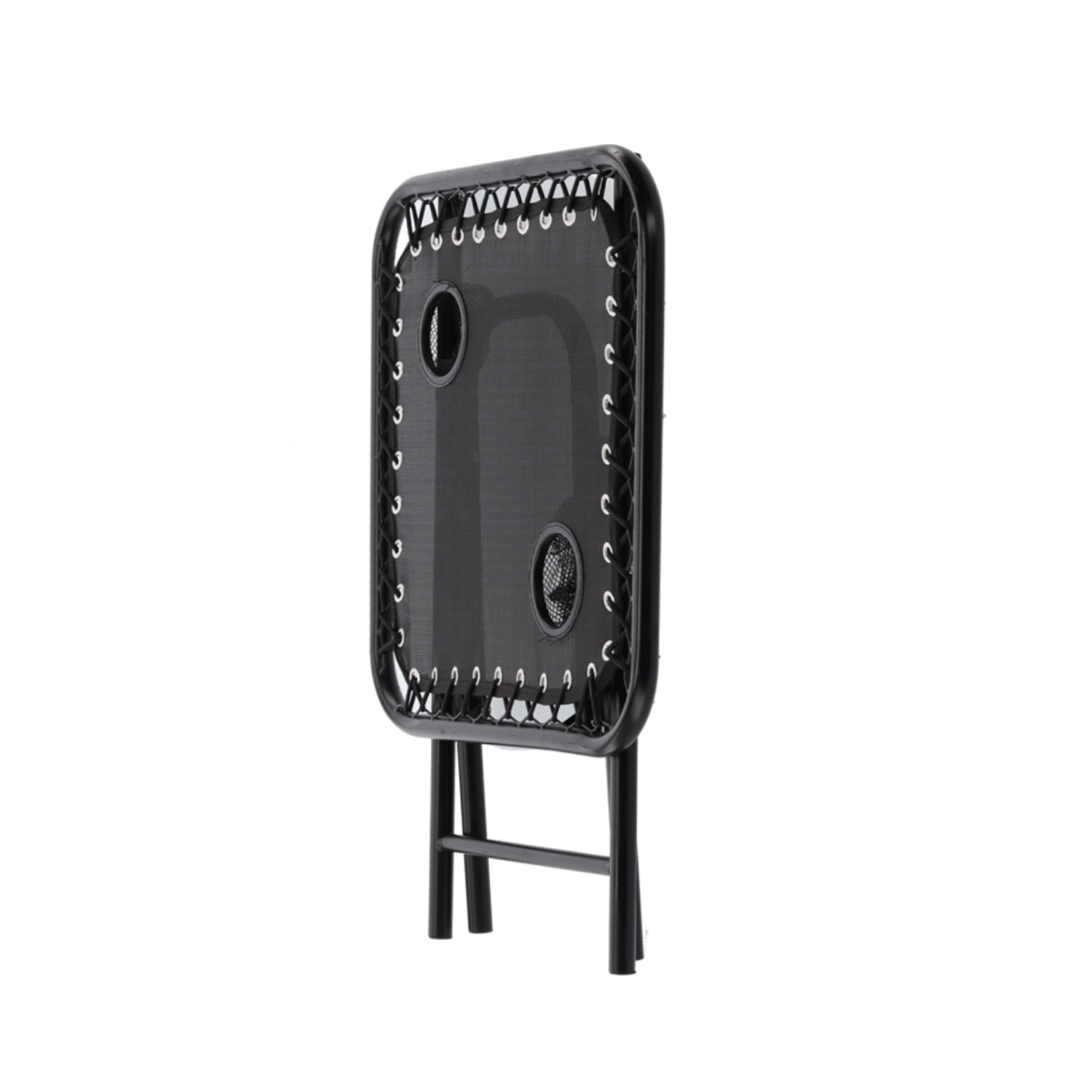 Hledáte praktický stolek na cesty, který rozložíte během pár sekund? Tento černý skládací turistický stolek kombinuje stabilitu kovového rámu s lehkým a přenosným provedením. Dva zabudované držáky bezpečně udrží kelímky či plechovky, takže máte nápoje vždy po ruce.