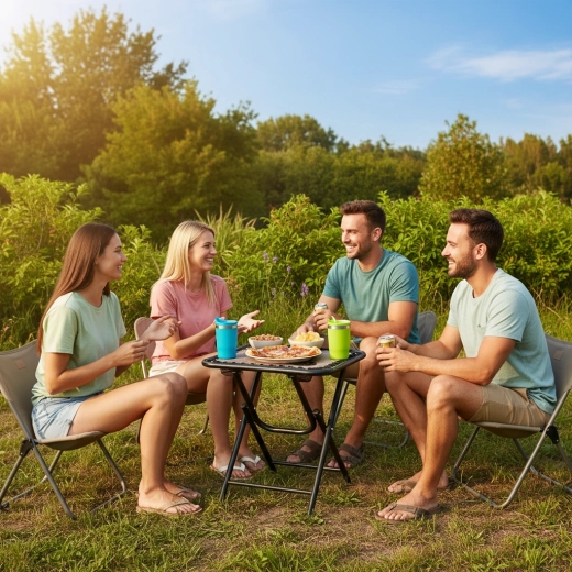 Pevný rám zajišťuje jistotu a stabilitu i na méně rovném terénu, takže se na stolek můžete spolehnout při každé aktivitě venku.