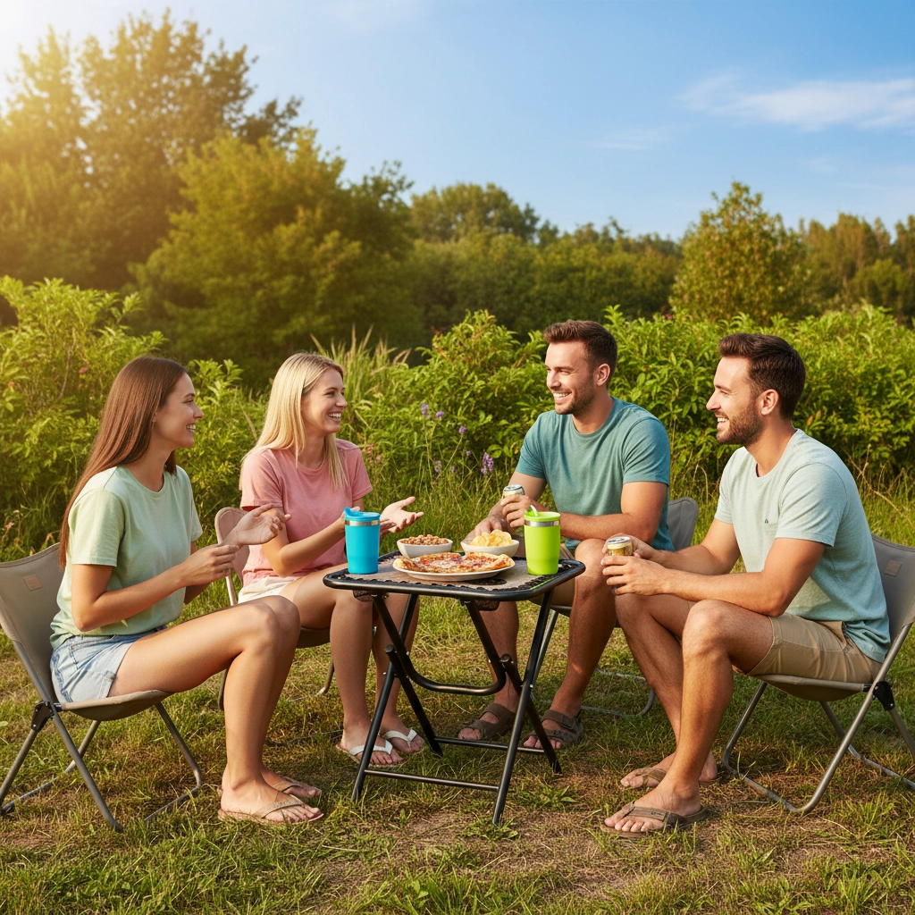Hledáte spolehlivý a skladný stolek na cesty? Tento hnědý skládací turistický stolek s rozměry 50 × 50 × 50 cm je skvělou volbou pro kempování, pikniky, rybaření i posezení na zahradě. Kovová konstrukce zajišťuje stabilitu, zatímco integrované držáky na nápoje bezpečně uchytí kelímky či lahve.