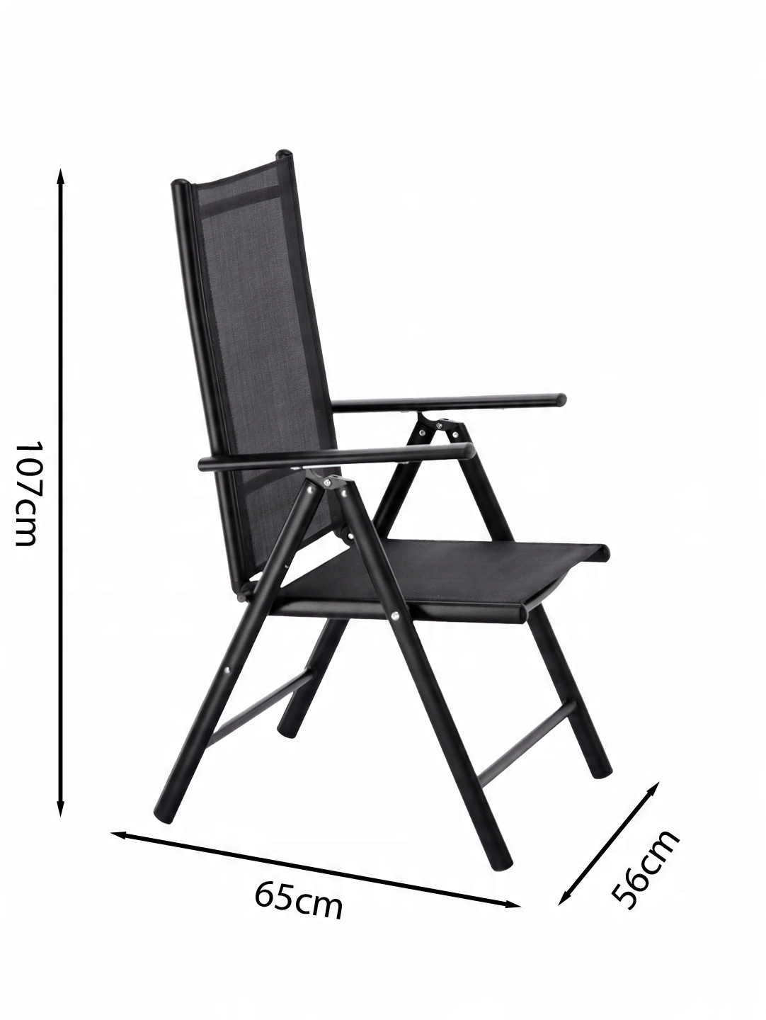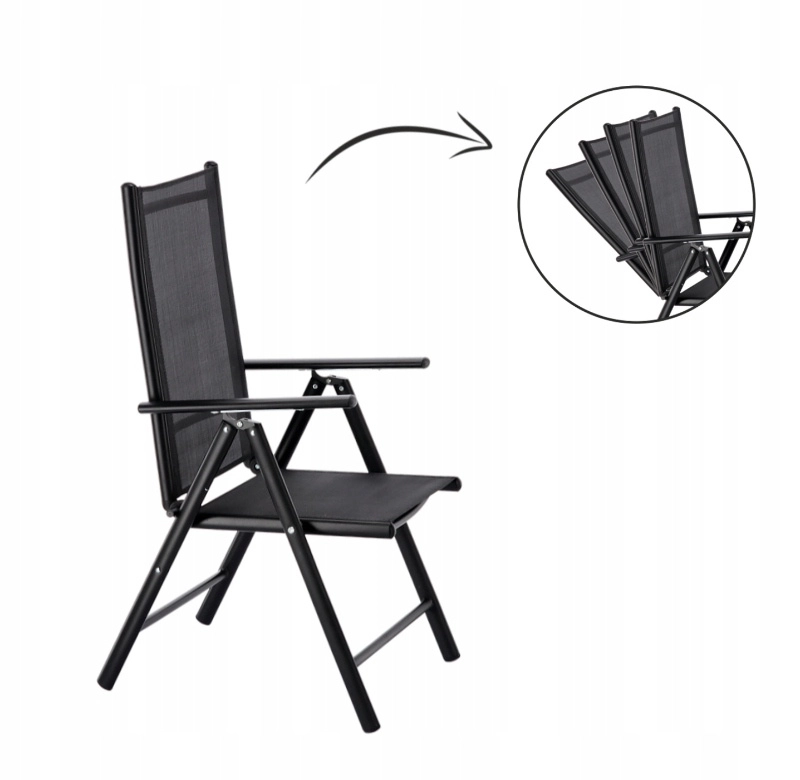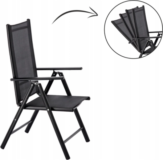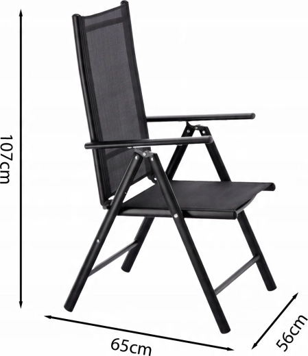 Skládací hliníková zahradní židle, černá, 66 × 56 × 107 cm