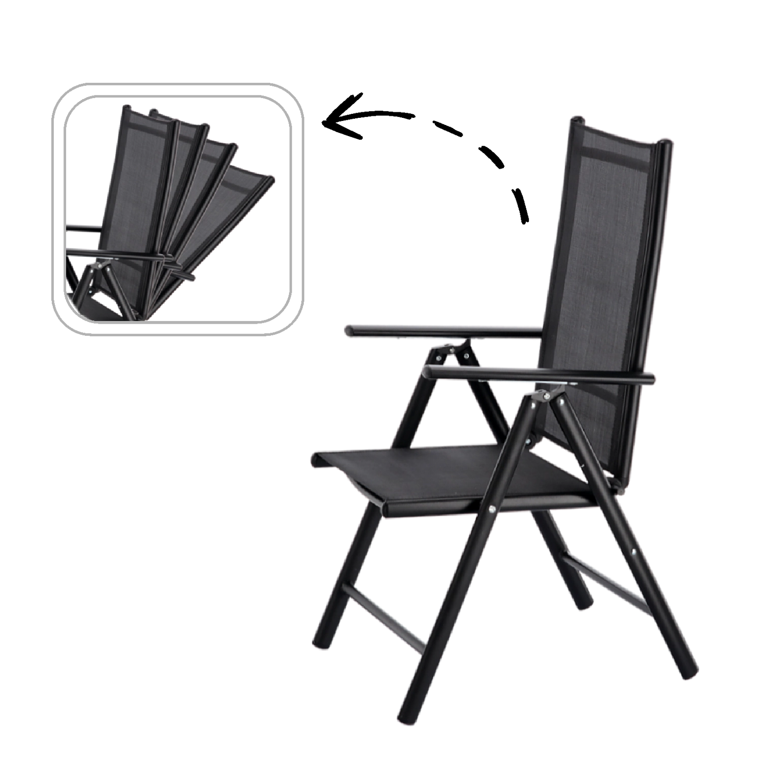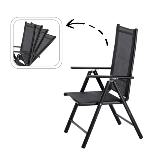 Díky 7 polohám opěradla snadno přepnete z jídelní pozice do relaxu na slunci. Židle se během chvilky složí, takže šetří místo při skladování a je ideální i na cestování či k bazénu.