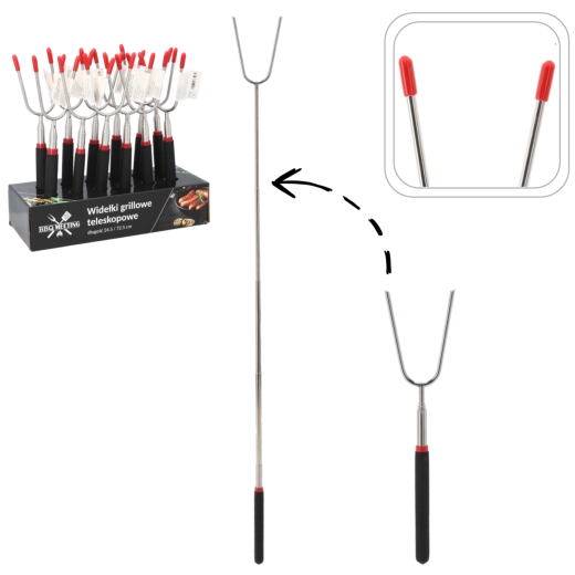 Praktické teleskopické vidlice pro pohodlné opékání u ohně i na grilu. Díky nastavitelné délce 24,5–72,5 cm zůstanete v bezpečné vzdálenosti od plamenů, zatímco dvouhrotý design jistě podrží párky, marshmallows či zeleninu. Ideální na kempování, pikniky a zahradní grilování.