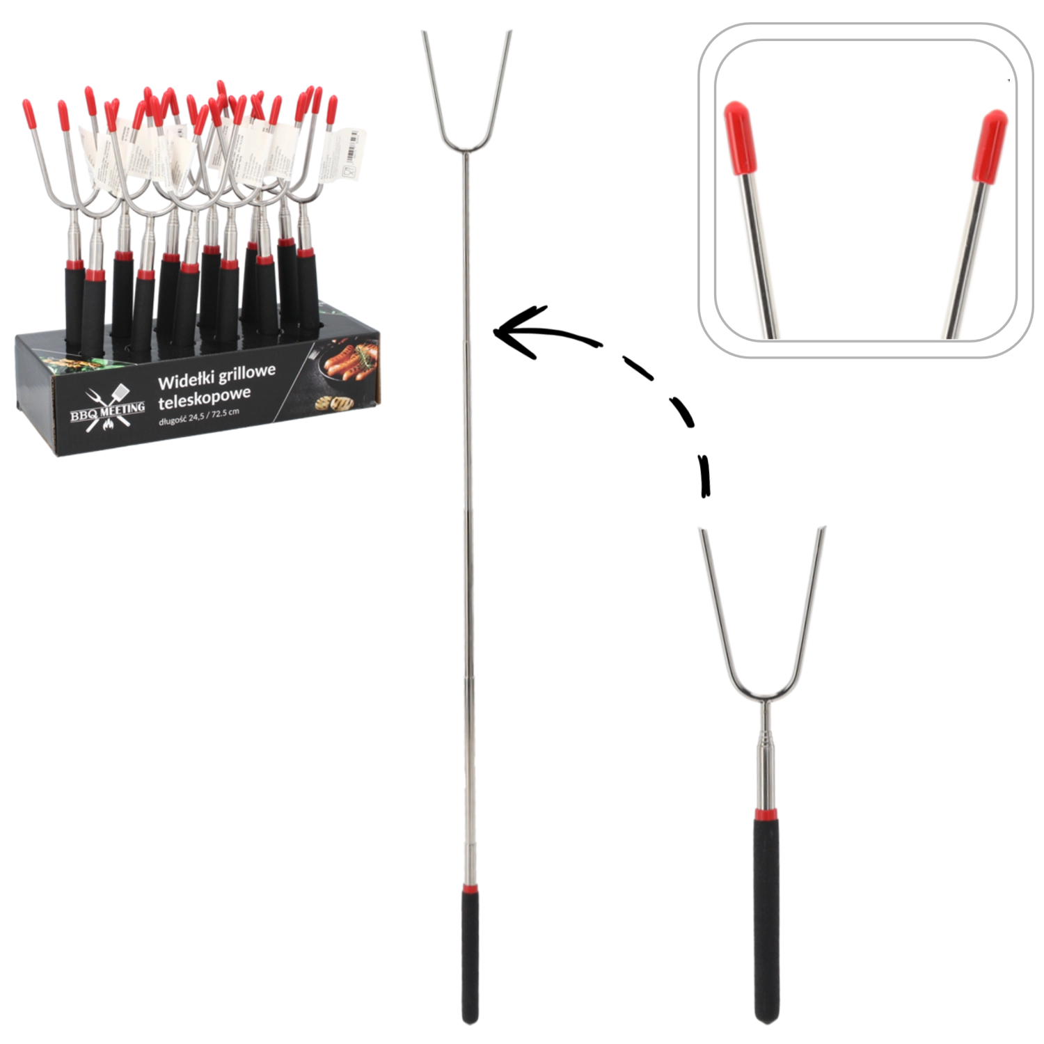 Užijte si bezstarostné grilování s teleskopickými vidlicemi, které se přizpůsobí každé situaci. Kompaktní při skladování a dostatečně dlouhé při použití, abyste měli ruce v bezpečí. Od opékání špekáčků až po marshmallows – spolehlivý pomocník pro celou rodinu.