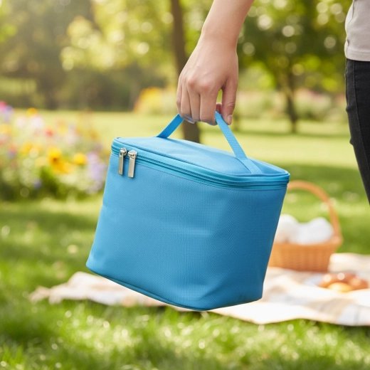 Kompaktní a stylová termo taška o objemu 4 litry v elegantní modré barvě udrží váš oběd, svačiny i nápoje déle čerstvé. Díky dvěma přiloženým chladicím vložkám a odolné tkanině Oxford 600D je ideální do práce, do školy, na výlety i pikniky. Praktické horní madlo, lehká konstrukce a spolehlivý zip se dvěma jezdci zajišťují pohodlné nošení a snadný přístup k obsahu.
