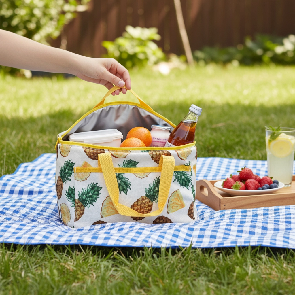 Užijte si čerstvé občerstvení kdekoli jste. Tato stylová izotermická taška 6 l s atraktivním ananasovým potiskem nabízí kombinaci nízké hmotnosti, odolné tkaniny a výborné izolace. Dva přiložené chladicí bloky prodlouží chladicí účinek během horkých dnů.