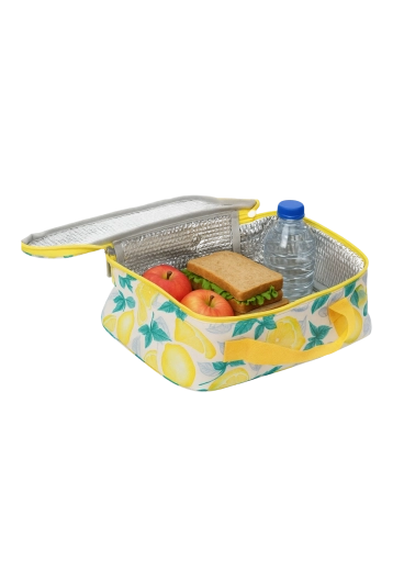Stylová a funkční termotaška s letním citronovým motivem je skvělá na oběd do práce, do školy i na výlety. Hliníková termoizolace uvnitř pomáhá udržet teplotu potravin – studenou i teplou – a spolu s dvěma chladicími vložkami udrží obsah déle čerstvý.