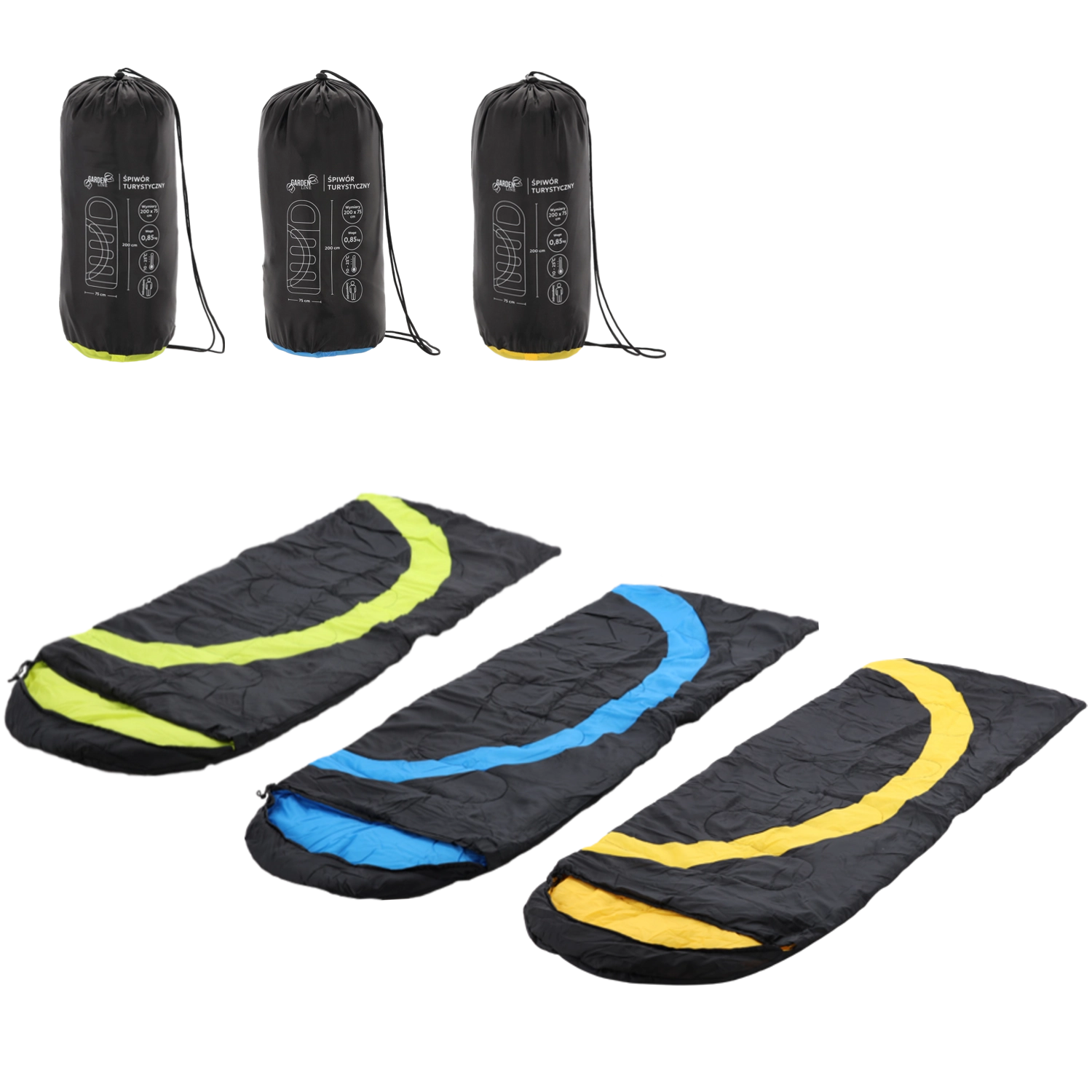 Díky hmotnosti pouhých 0,85 kg a dodávanému obalu se spacák snadno přenáší i sbalí do batohu. Odolný zip po celé délce usnadňuje větrání a nastupování. Barevné varianty (černo‑modrá, černo‑žlutá, černo‑limetková) dodají vašemu vybavení svěží vzhled.
