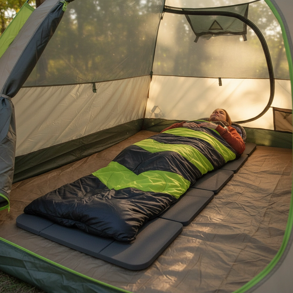 Lehký a pohodlný spací pytel pro kempování, festivaly i víkendové výlety. Nabízí voděodolný materiál, pohodlnou kapuci, vnitřní kapsu na drobnosti a praktický kompresní obal. Díky rozměrům 220 × 75 cm poskytuje dostatek prostoru a volnost pohybu, zatímco odolný zip a pečlivé zpracování zajišťují dlouhou životnost.