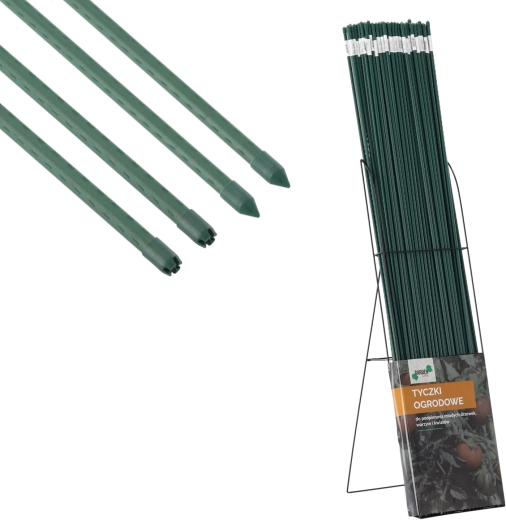 Odolná povlakovaná tyčka je ideální pro pnoucí rostliny, křehké květiny, bobuloviny i zeleninu. Díky zaostřenému konci ji snadno zapíchnete do půdy a podélné výstupky drží stonky i úvazy na místě. Polyetylenový povrch chrání ocelové jádro proti korozi a prodlužuje životnost opory i při celoročním použití.