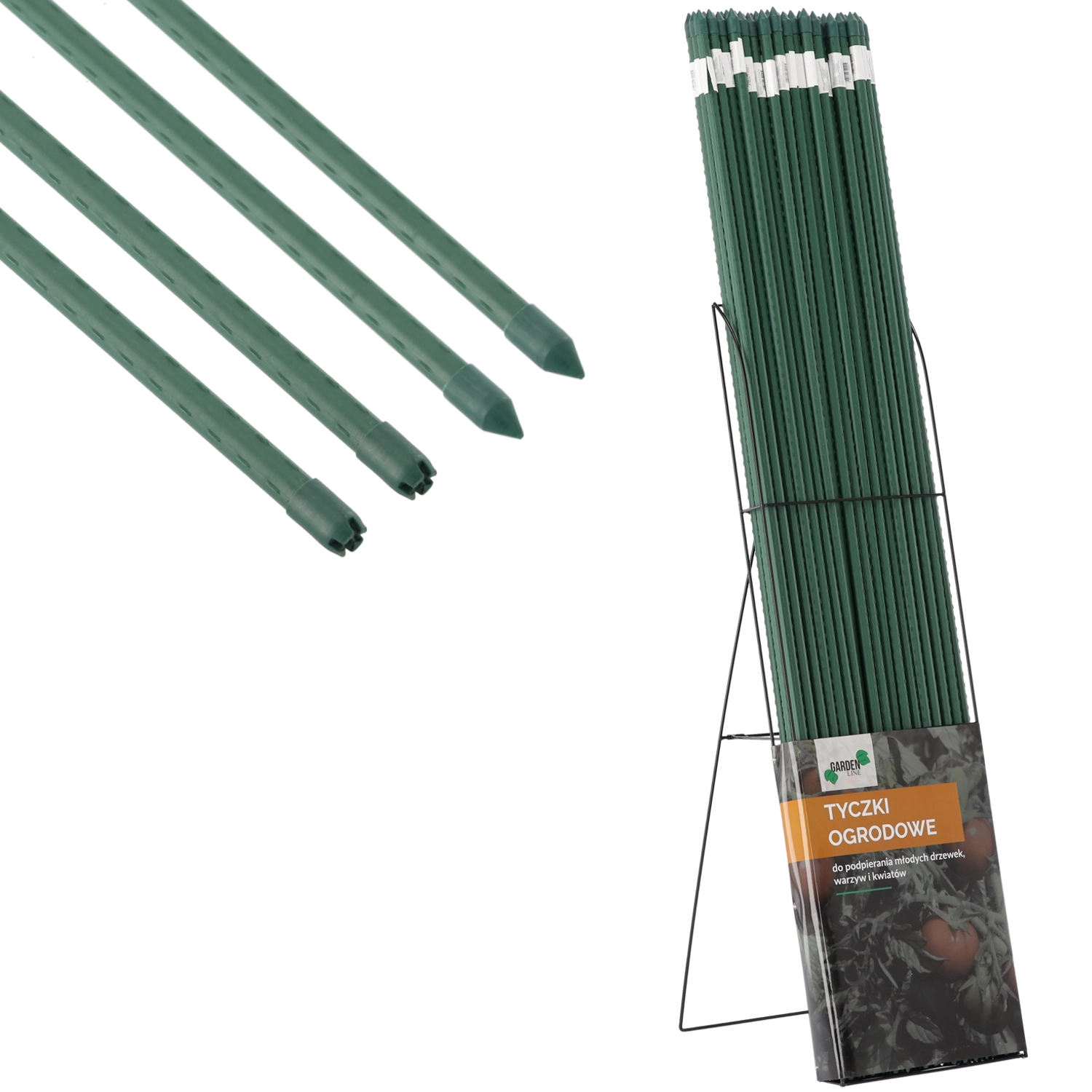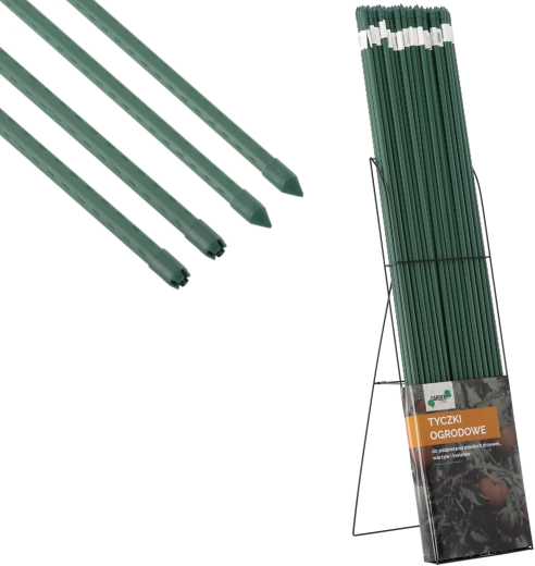 Tato povlečená tyčka je ideální pro podpěru pnoucích rostlin, křovin, jemných květin i zeleniny a ovocných rostlin. Kovové jádro dodává pevnost, polyethylenový povrch chrání před korozí a vlhkostí. Součástí je ocelový stojan, který rozšiřuje možnosti ukotvení a uspořádání v záhoně či ve skleníku.