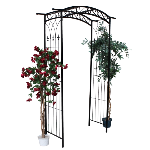 Zakřivený oblouk a svislé výplně poskytují ideální vedení pro růže, břečťan či girlandy. Vytvořte působivý vstup do zahrady nebo fotogenické místo na terase.
