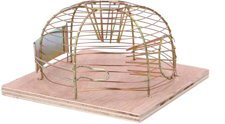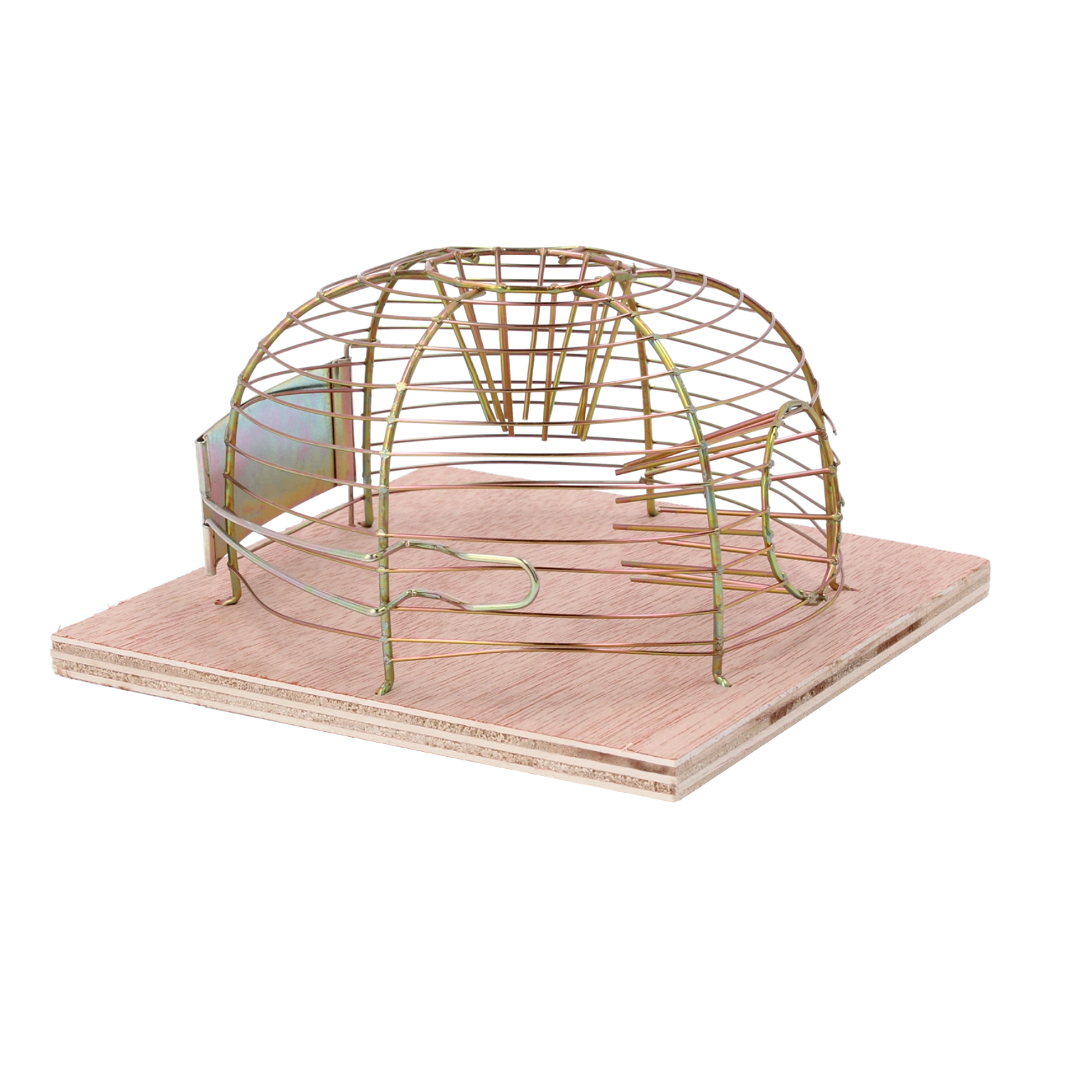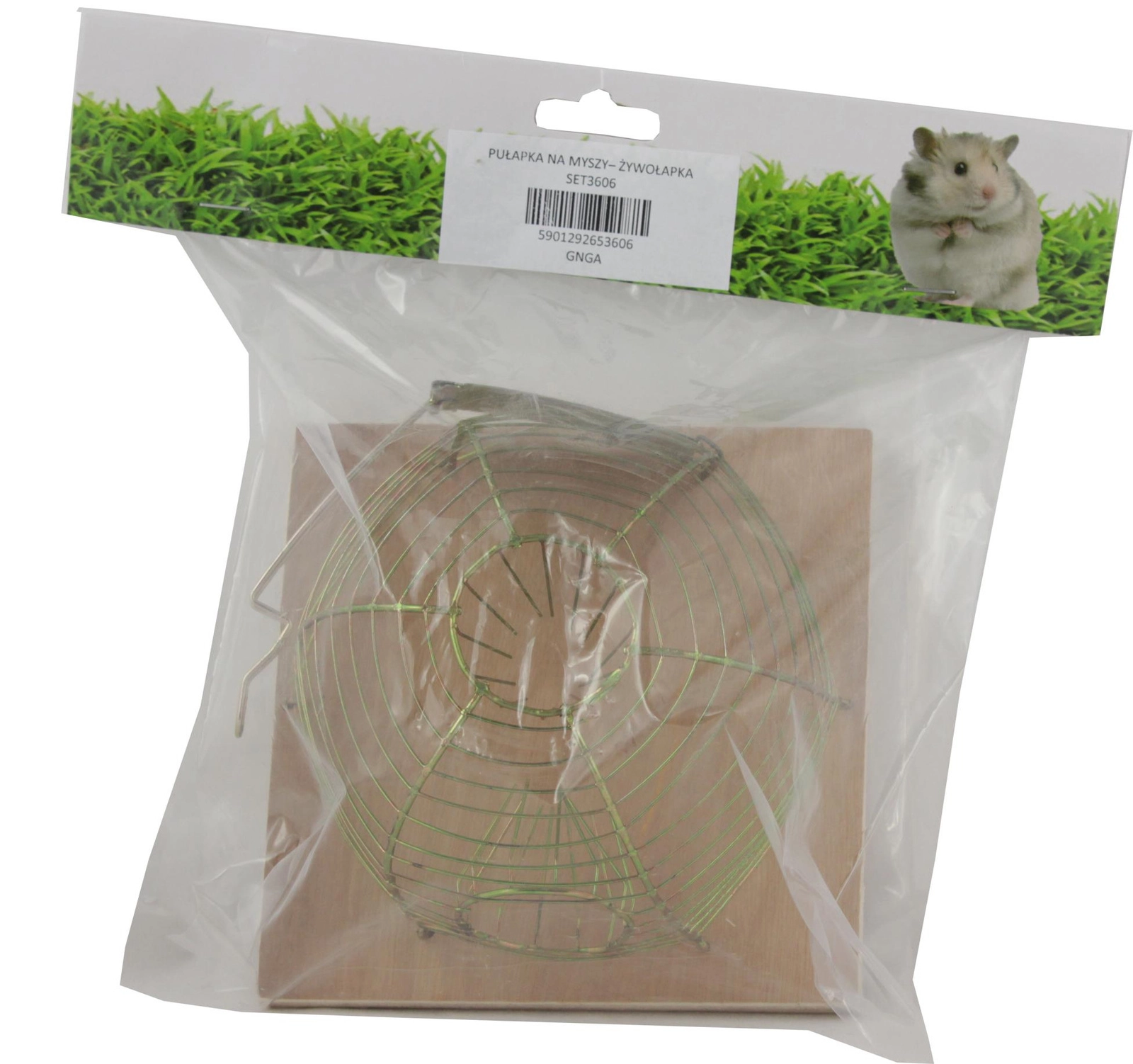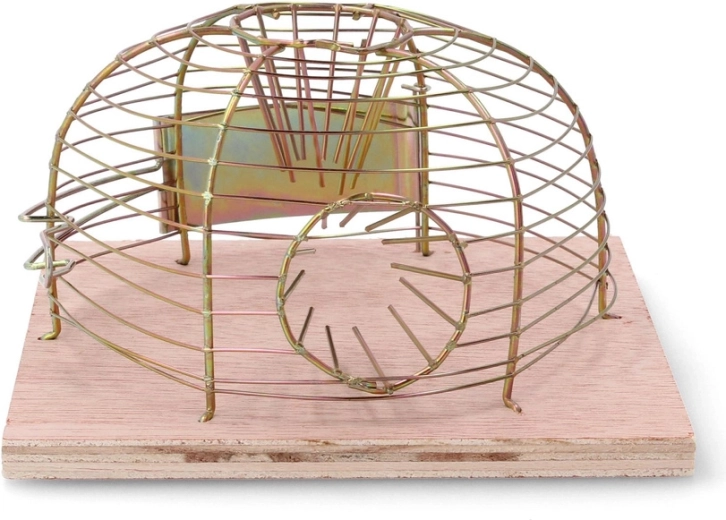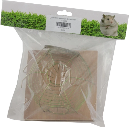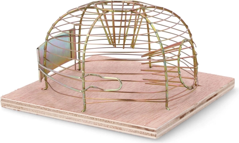 Tato živolovná past umožňuje bezpečný odchyt myší a jejich následné vypuštění v dostatečné vzdálenosti. Otevřená drátěná kopule zajišťuje dobrou viditelnost a ventilaci, zatímco dřevěná základna dodává stabilitu na rovných površích.