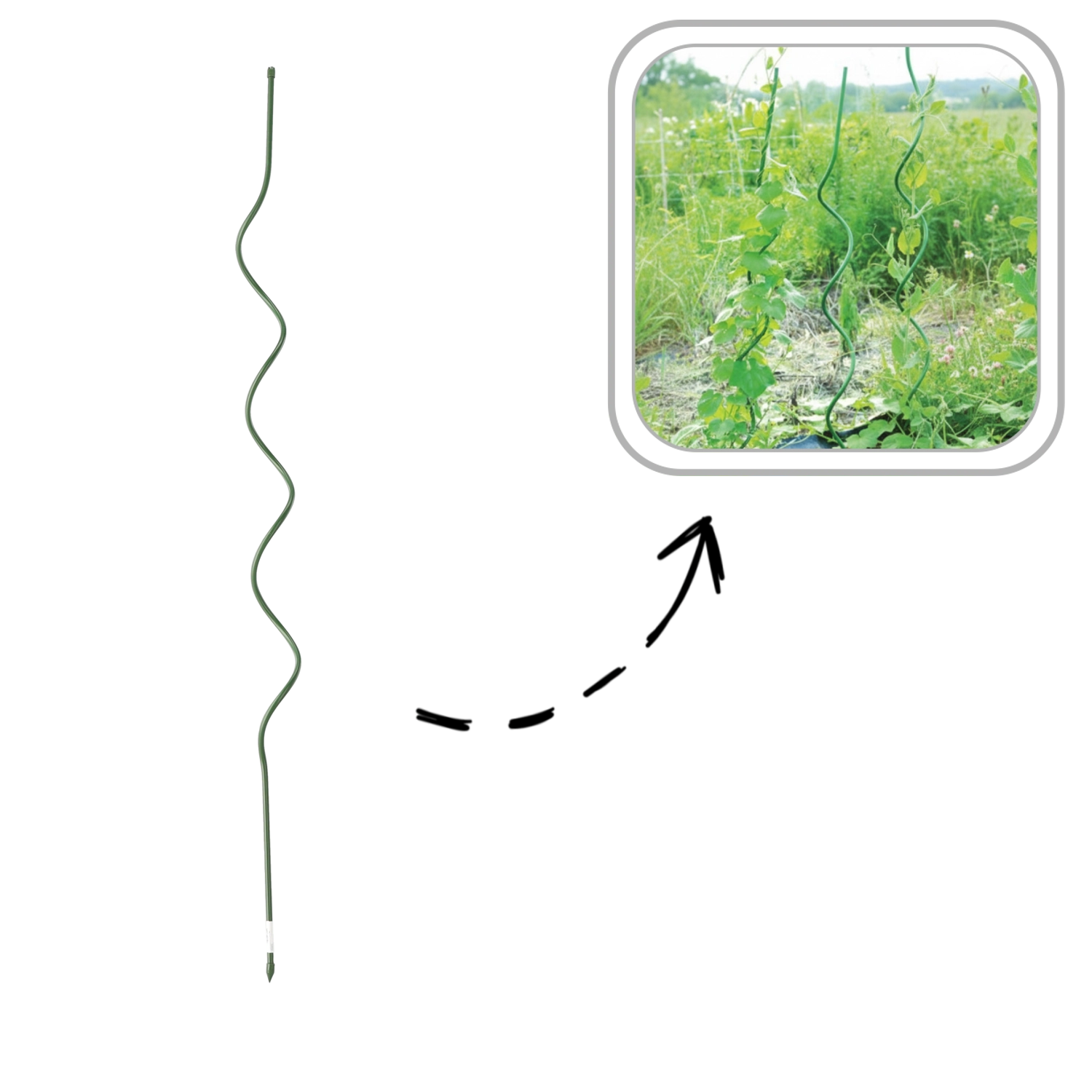 Spirálová tyč je ideální pro pěstování zeleniny, květin i okrasných keřů. Díky spirálovému tvaru poskytuje rostlinám stabilní oporu bez nutnosti složitého vyvazování a podporuje jejich přirozený růst směrem vzhůru.