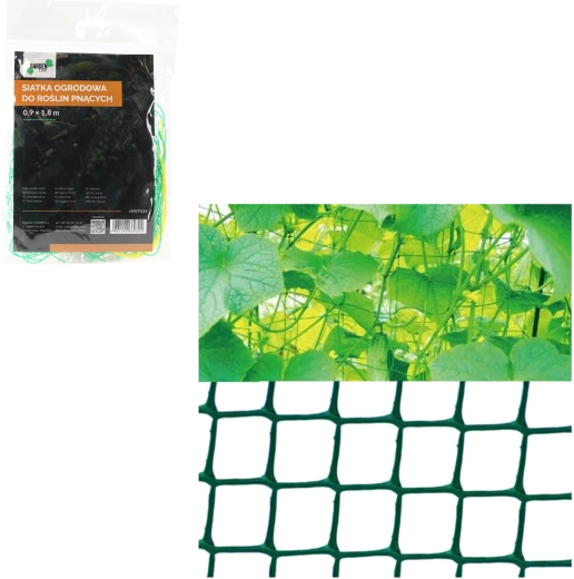 Zelená opěrná síť je navržena pro vertikální pěstování popínavých rostlin. Pevná plastová mřížka z polypropylenu s velkými oky poskytuje rostlinám stabilní body k uchycení, zlepšuje cirkulaci vzduchu a maximalizuje využití prostoru ve skleníku i na záhonu.
