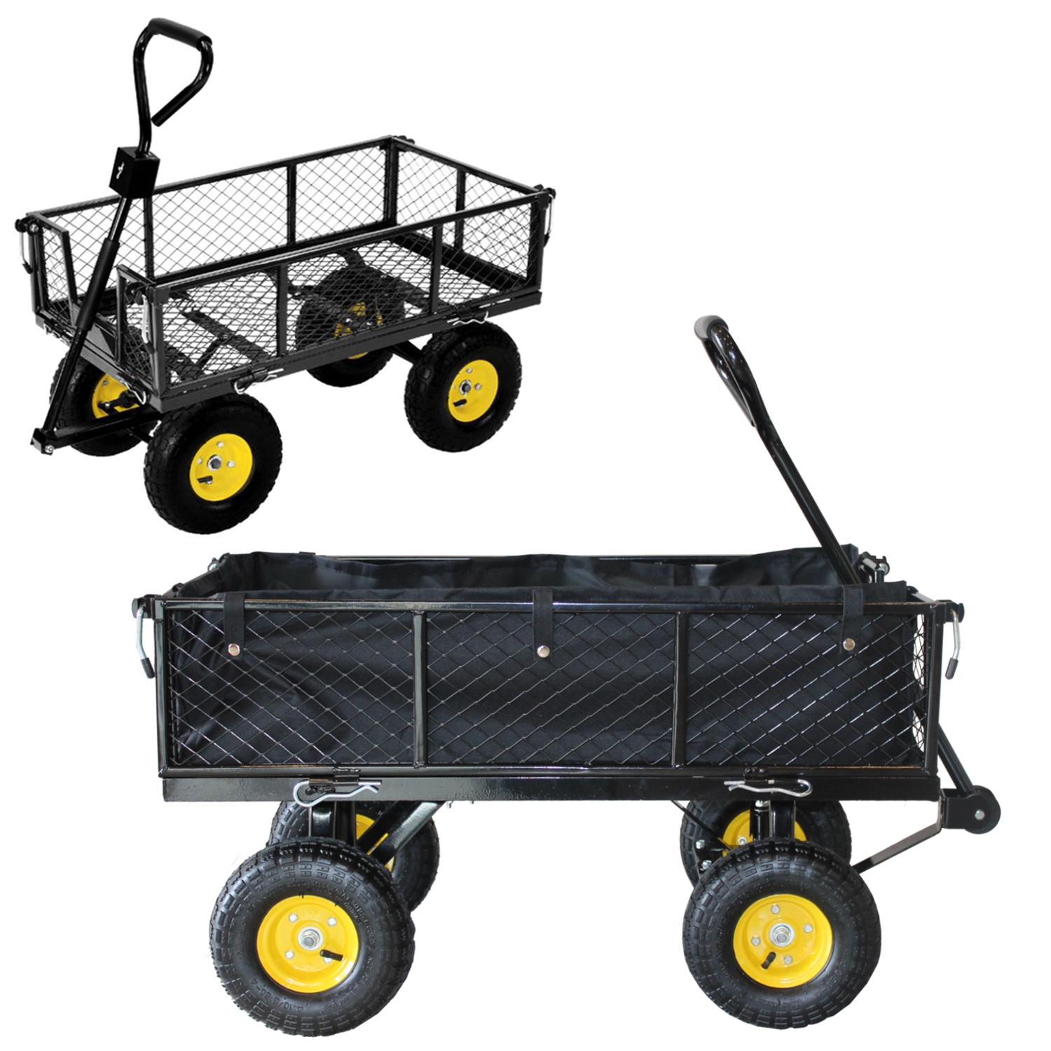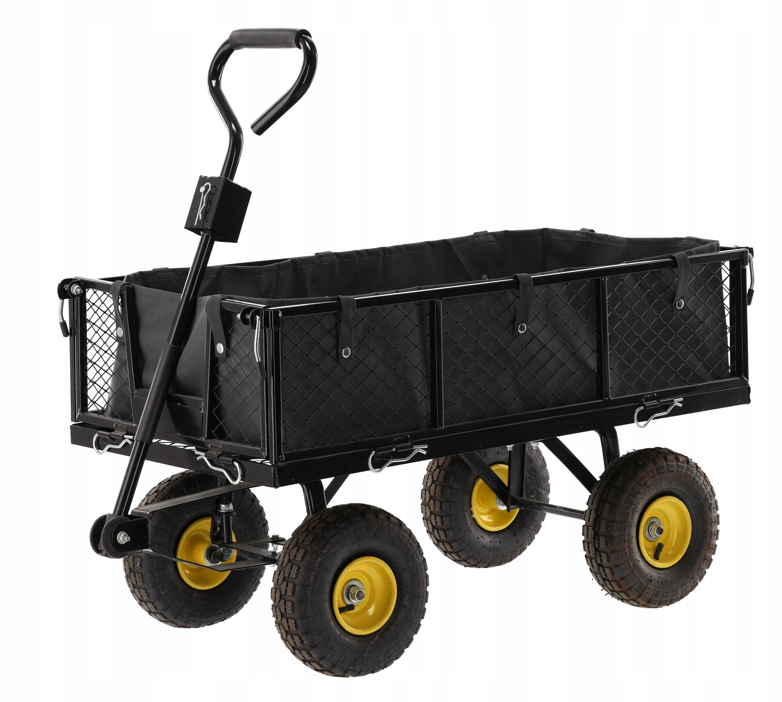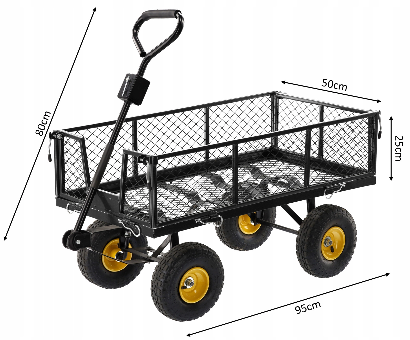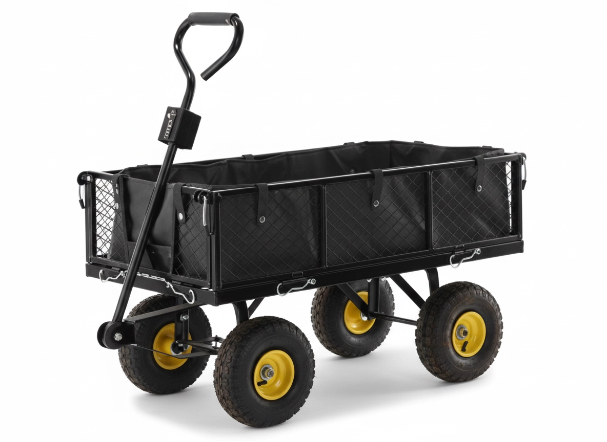 Univerzální zahradní vozík pro každodenní práci okolo domu, na zahradě i na stavbě. Stabilní konstrukce, vysoká nosnost a snadné manévrování z něj dělají spolehlivého pomocníka pro přepravu materiálu, nářadí i sklizně. Otočná přední náprava a velká nafukovací kola tlumí nerovnosti a zajišťují plynulý pohyb.