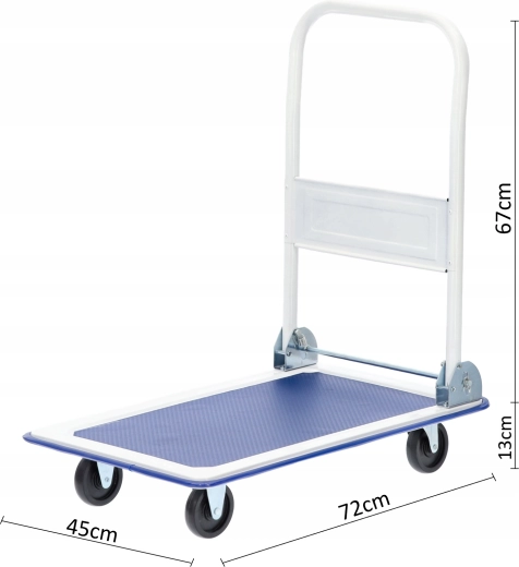 Hledáte spolehlivý a skladný transportní vozík do domácnosti, kanceláře nebo skladu? Tento plošinový vozík s nosností 150 kg kombinuje odolnou konstrukci, pohodlné ovládání a možnost rychlého složení rukojeti pro úsporné uložení. Protiskluzová textura plošiny drží náklad pevně na místě a snižuje riziko poškození přepravovaných věcí.