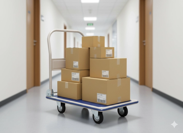 Čtyři otočná kolečka zajišťují plynulý pohyb i v úzkých uličkách, zatímco ergonomická skládací rukojeť zvyšuje komfort při vedení vozíku. Díky kompaktním rozměrům jej snadno uskladníte i v menších prostorech – ideální do skladu, na poštu, do dílny či kanceláře.