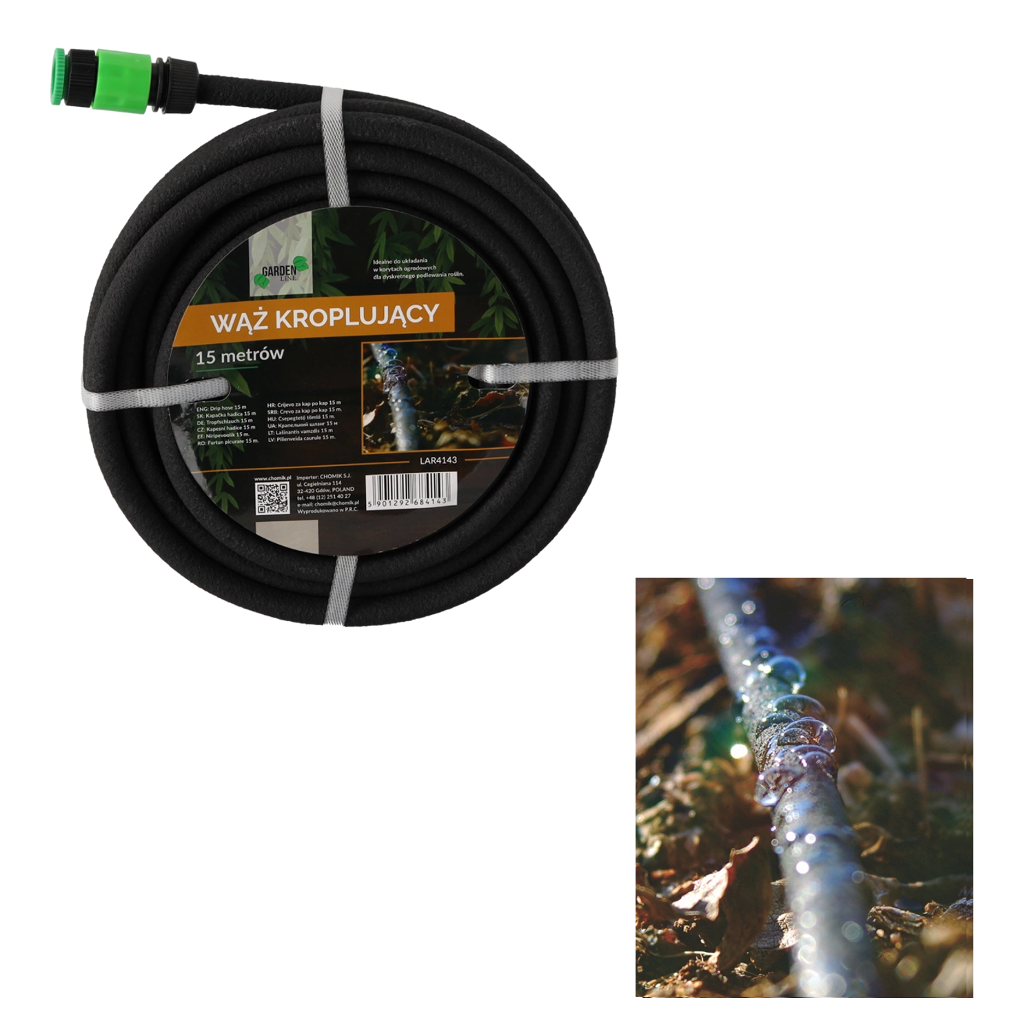 Udělejte z zavlažování chytrou a úspornou rutinu. Kapkovací hadice dodává vodu pomalu a rovnoměrně přímo ke kořenům, čímž minimalizuje odpar i plýtvání a zajišťuje ideální vláhu pro záhony, zeleninové zahrady, skleníky i okrasné rabaty.