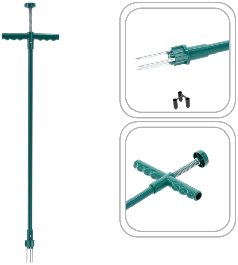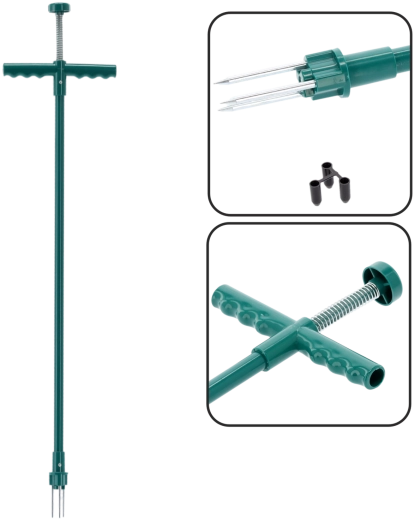 Praktický vyrývač plevele GARDENLINE umožní rychlé a účinné odstranění plevele bez ohýbání zad. Odolné ocelové hroty s pružinovým mechanismem zaručí přesné vytažení kořenů, zatímco ergonomická T‑rukojeť zajistí pohodlné ovládání. Součástí je také ochranná krytka pro bezpečné uložení.
