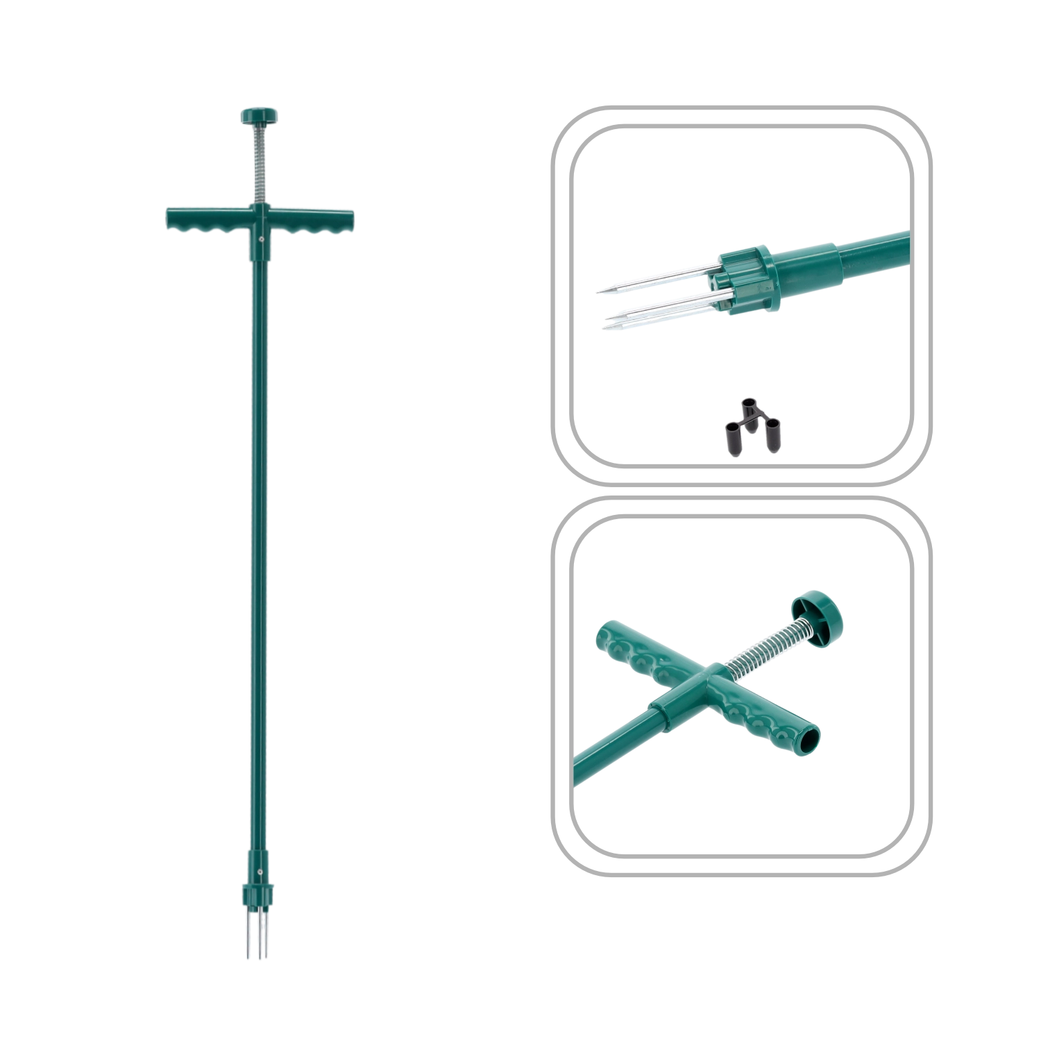 Tři pevné ocelové hroty proniknou do půdy a uchopí plevel u kořene. Díky tomu odstraníte rostlinu celou, a snížíte tak její opětovné obrůstání.