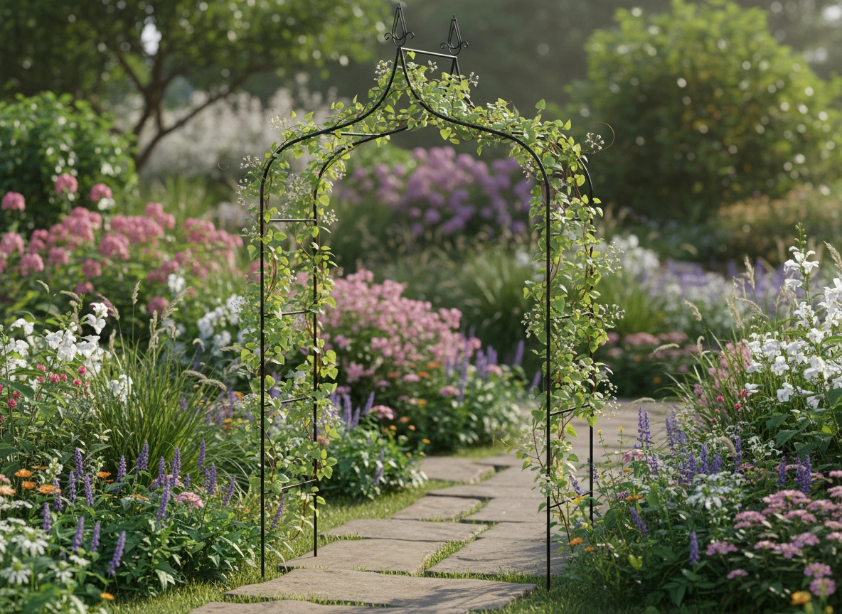 Práškově lakovaná ocel v univerzální černé barvě odolává povětrnosti a dobře ladí s klasickými i moderními zahradami. Součástí balení jsou kotvy pro bezpečné ukotvení, které zajišťují stabilitu i při větru.