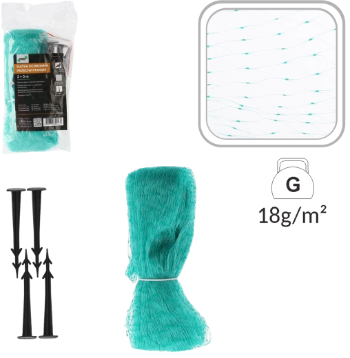 Praktická a lehká ochranná síť proti ptákům z kvalitního polpropylenu chrání úrodu před nechtěnými návštěvníky. Díky zelené barvě je v zahradě téměř neviditelná, je tenká, pružná a snadno se přizpůsobí tvaru koruny či záhonů. Vhodná pro třešně, višně, angrešt, borůvky, jahody i vinnou révu. Odolná vůči povětrnosti, pro opakované použití. Součástí balení jsou 4 kolíky pro upevnění.