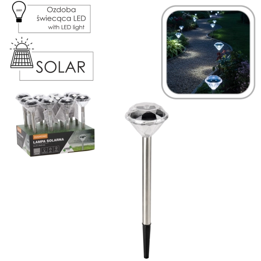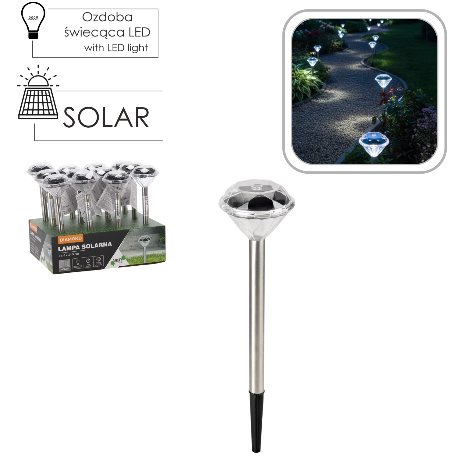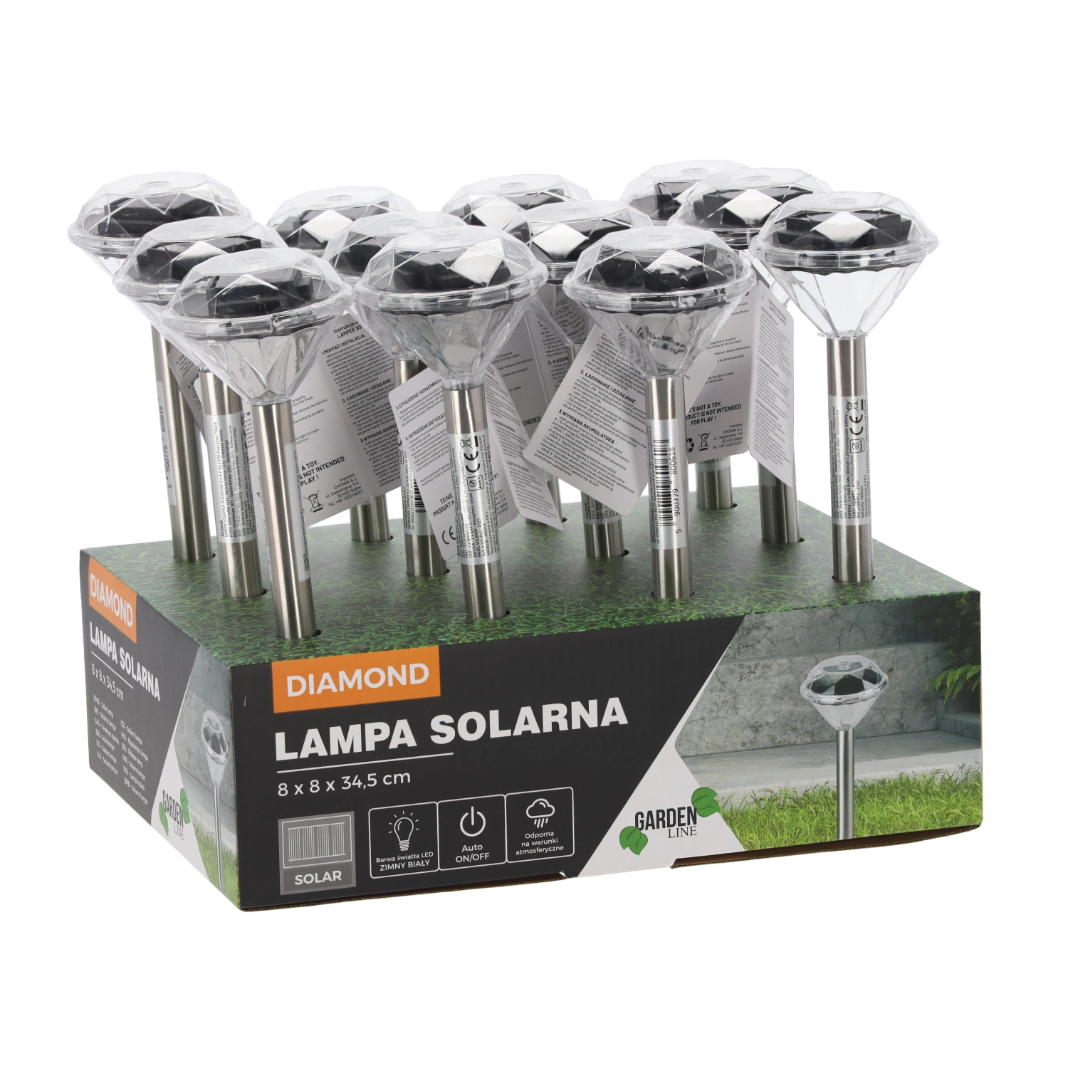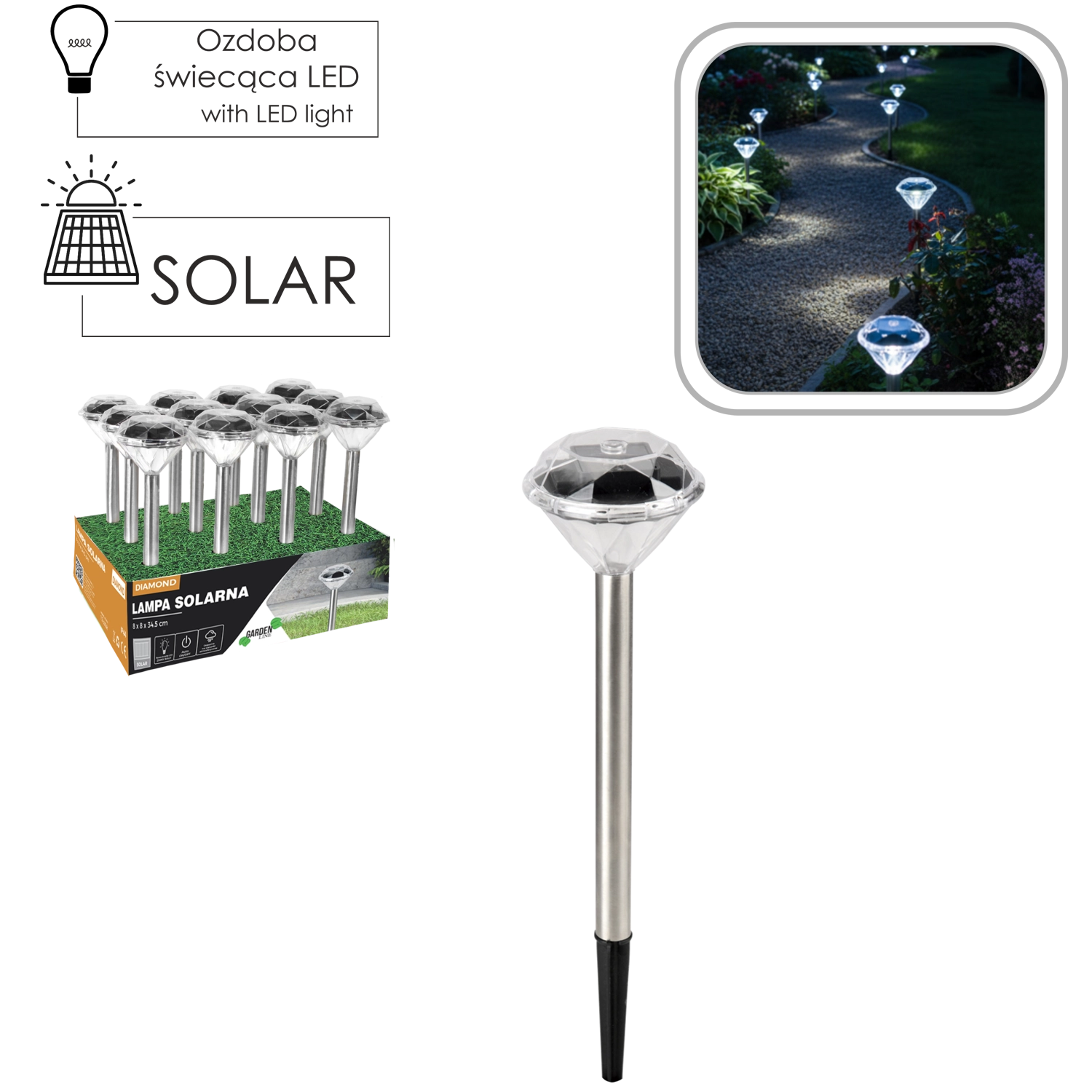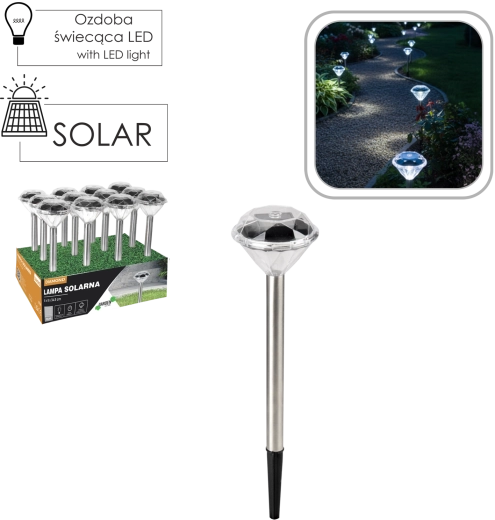 Stylová solární lampa DIAMOND s bílou LED je ideální pro osvětlení zahradních cestiček, teras a vjezdů. Díky napájení ze slunce je bezdrátová, úsporná a odolná vůči povětrnosti (IP44). Nerezové provedení v saténové barvě a jednoduchá instalace pomocí zemního hrotu zaručují rychlé a elegantní řešení venkovního osvětlení bez dodatečných nákladů.