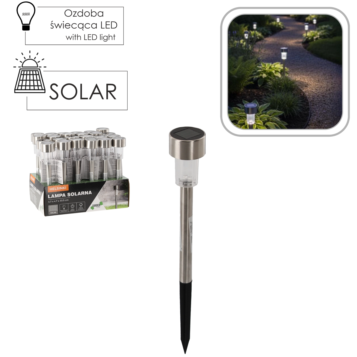 Vytvořte si příjemnou atmosféru na zahradě pomocí solární lampy HELSINKI z řady Garden Line. Lampa se během dne nabíjí pomocí amorfněho solárního panelu a po setmění automaticky rozsvítí bílou LED. Jednoduchá instalace na zapichovací kolík umožní umístit světlo kdekoliv, kde je dostatek slunce.