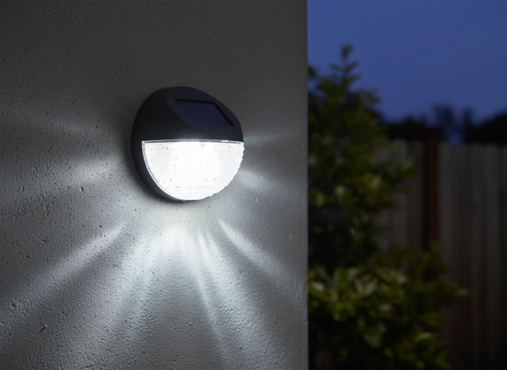 Díky kompaktním rozměrům 11,3 × 11,3 × 4,5 cm se hodí na zdi, ploty i schodišťové stupně. Stupeň krytí IP44 zajišťuje spolehlivý provoz v běžných venkovních podmínkách po celý rok. Dvě bílé LED diody vytvářejí decentní, dekorativní osvětlení pro bezpečnější pohyb po setmění.