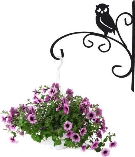 Dekorativní nástěnný držák na květináč s motivem sovy v elegantní černé barvě o rozměrech 30 × 28 cm. Díky pevné kovové konstrukci je vhodný pro použití doma i venku a spolehlivě unese závěsné květináče, lucerny či zvonkohry. Přidejte svému balkonu, terase nebo zahradě stylový akcent a užijte si odolné, praktické a snadno montovatelné řešení pro závěsné dekorace.