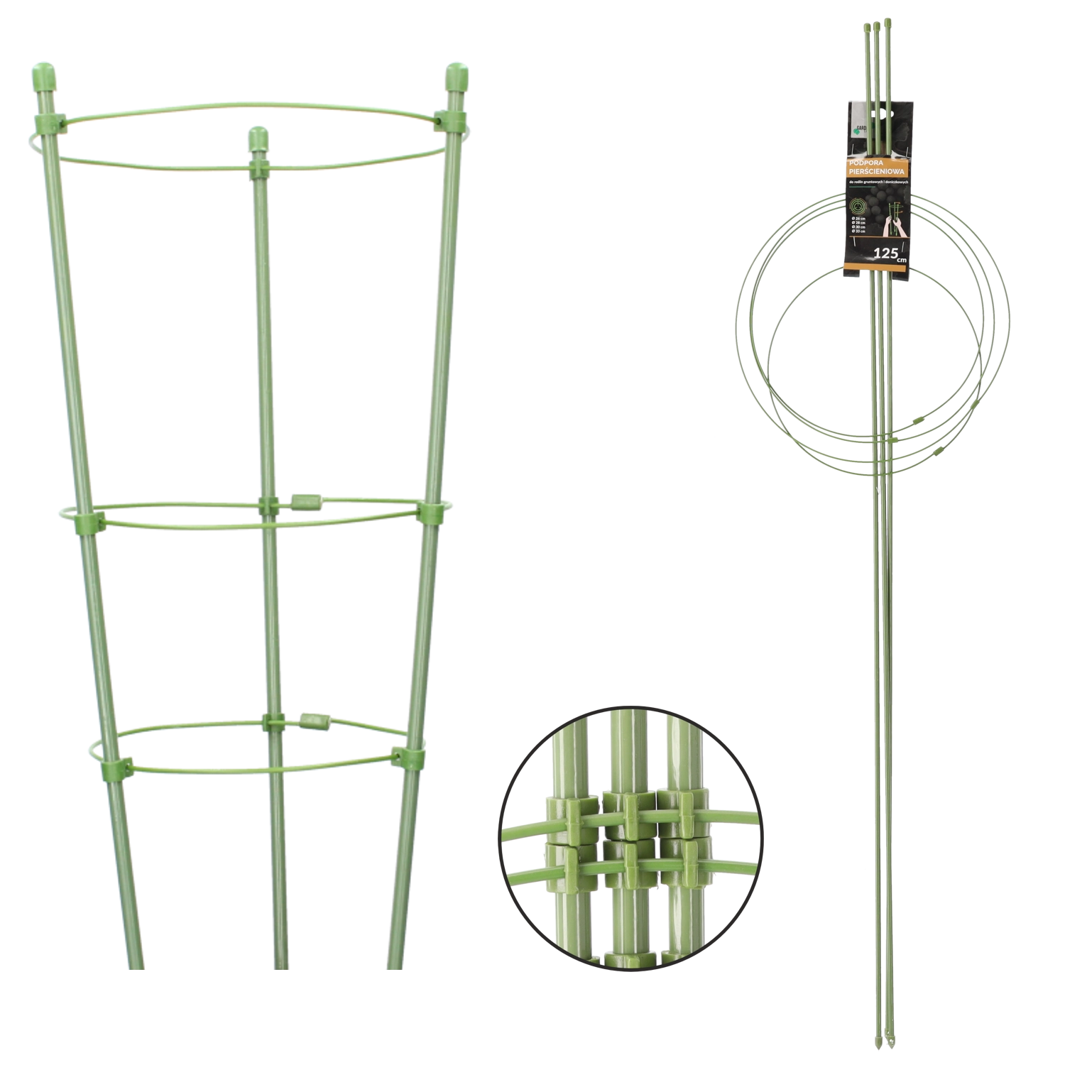Praktická kruhová opora pro rostliny s výškou 125 cm zajistí vašim květinám a keřům spolehlivou stabilitu a harmonický růst. Odolná ocelová konstrukce s PE povlakem výborně snáší vlhko i vítr, zatímco zelená barva nenápadně splyne s porostem. Ideální pro záhony i květináče – skvělá alternativa k jednotlivým tyčkám.