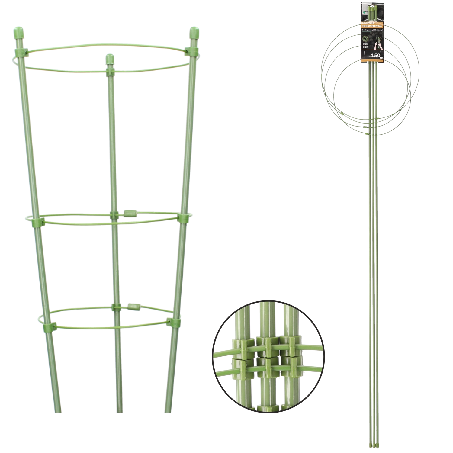 Praktická kruhová opora pro zahradní i pokojové rostliny o výšce 150 cm z odolné oceli potažené PE. Zajišťuje stabilní oporu, brání poléhání rostlin a podporuje harmonický růst. Díky zelené barvě je v porostu téměř neviditelná a skvěle se hodí k borůvkám, hortenziím i dalším keřům a trvalkám.
