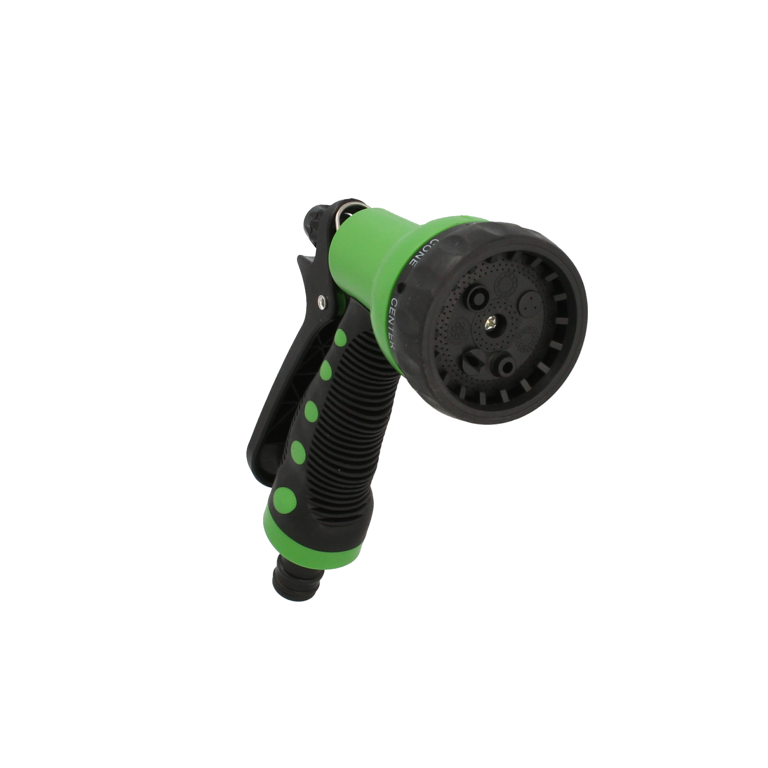 Univerzální zahradní pistole se 7 režimy postřiku pro přesné zavlažování trávníků, záhonů i květin. Díky plynulé regulaci průtoku snadno přizpůsobíte sílu vody. Odolné provedení z kvalitního ABS a TPR je trvanlivé, těsné a odolné vůči slunci i mrazu. Bez kadmia a olova, vhodné k recyklaci.
